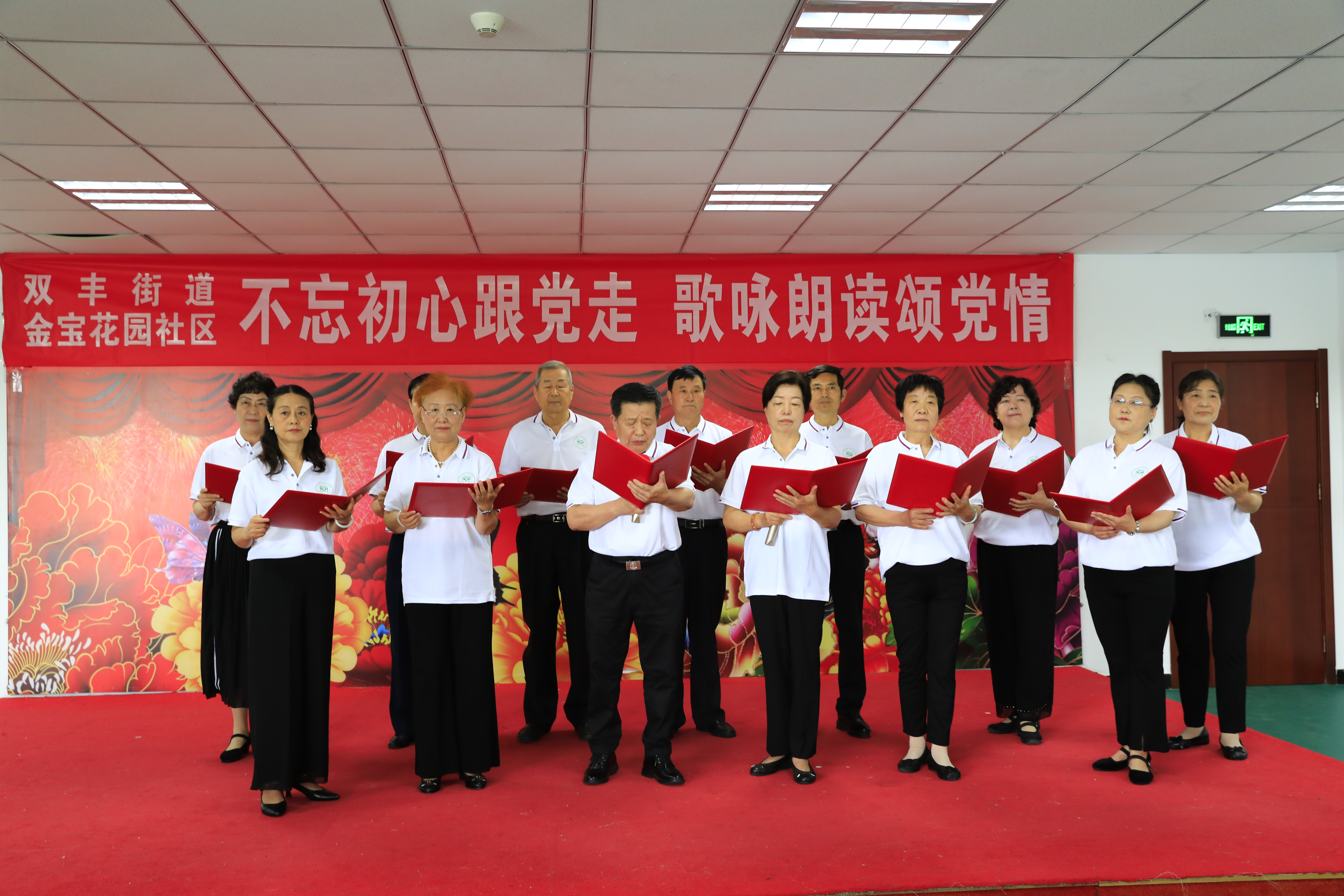 双丰街道金宝花园社区诗歌诵读队属于居民自筹,自发建立的队伍组织,一起吟诗作赋,分享诗中美好,为社区里精神文明领航创建领航。随着开展活动、微信分享、面对面互相探讨,加深对诗词歌赋的理解,增进社区居民之间的交流,融洽了邻里关系,成为城市文明的新风尚。