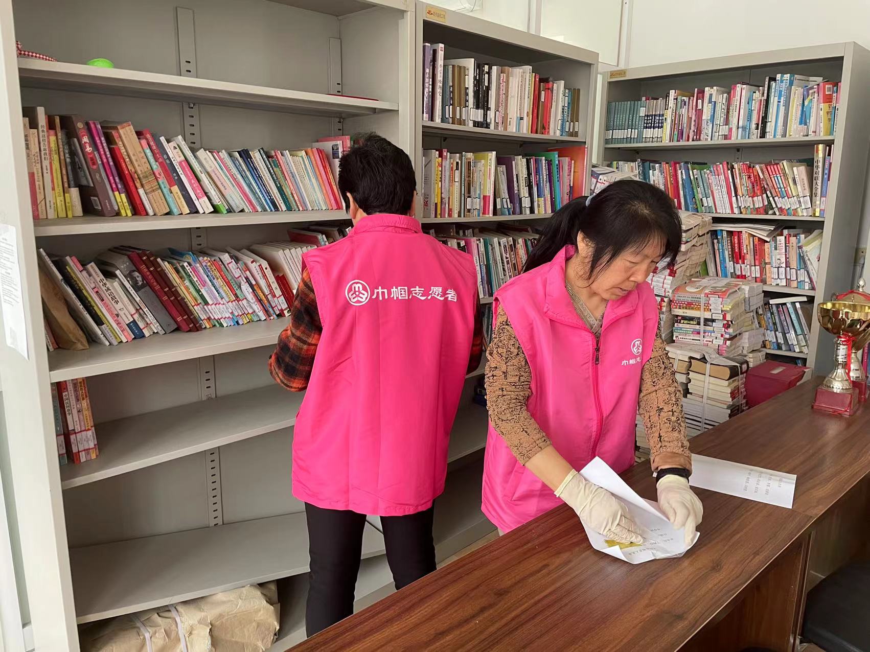 2023年3月28日大孙各庄镇户耳山村巾帼志愿服务队开展书香浓情,你我同行——图书馆整理书籍活动。