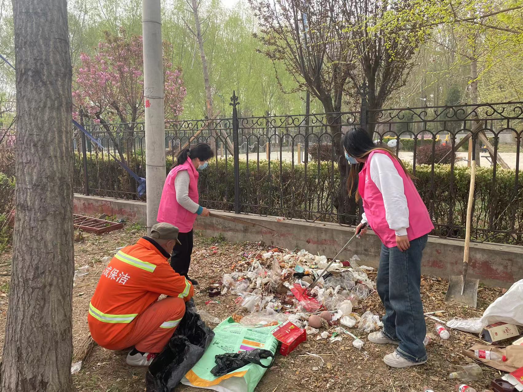 2023年4月11日大孙各庄镇户耳山村巾帼志愿服务队开展清理卫生,垃圾分类活动。