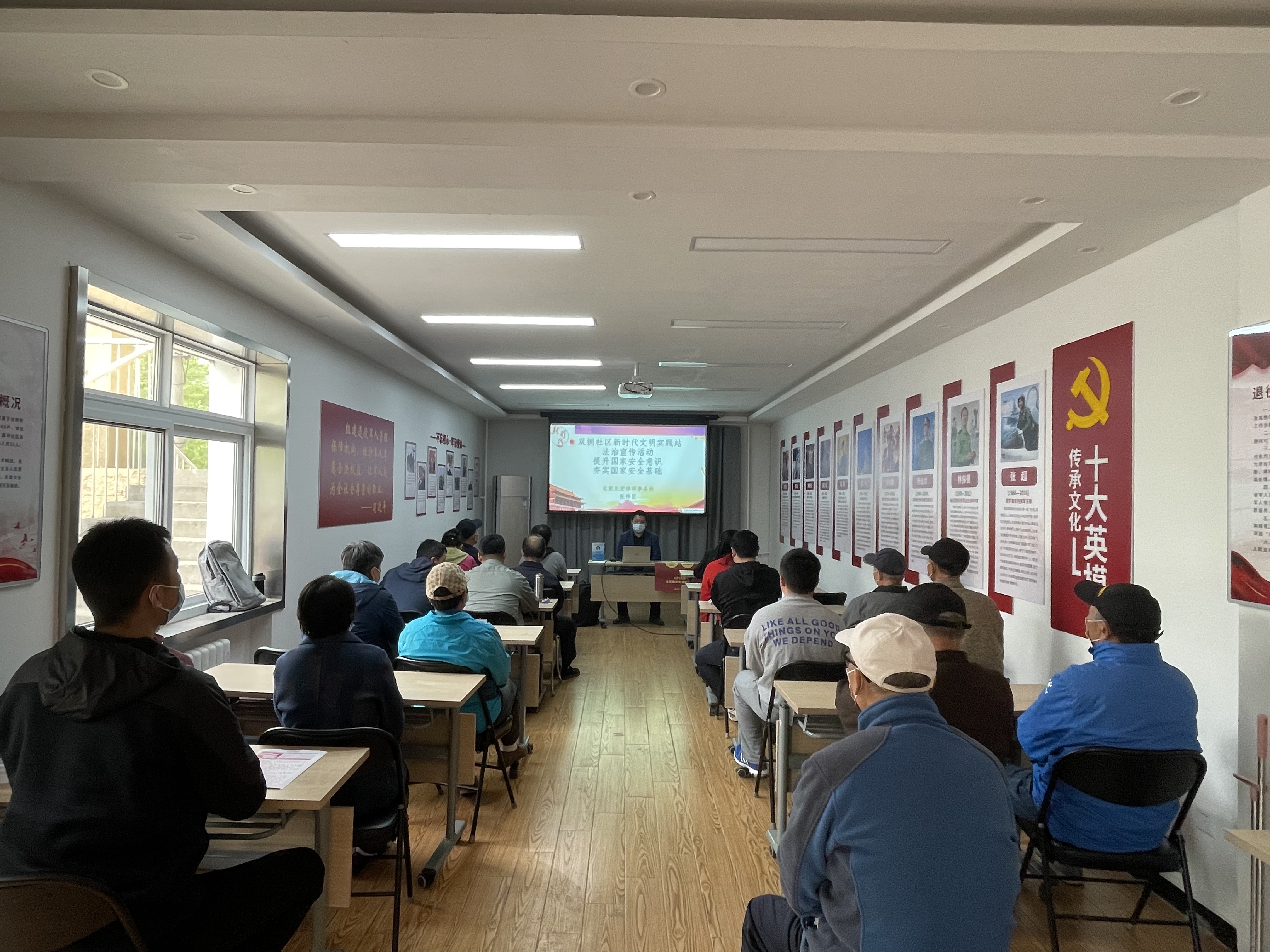 2023年4月13日,双拥社区开展法治宣传活动,政策宣传志愿者为居民讲解法治相关知识,提升居民国家安全意识,夯实国家安全基础。
