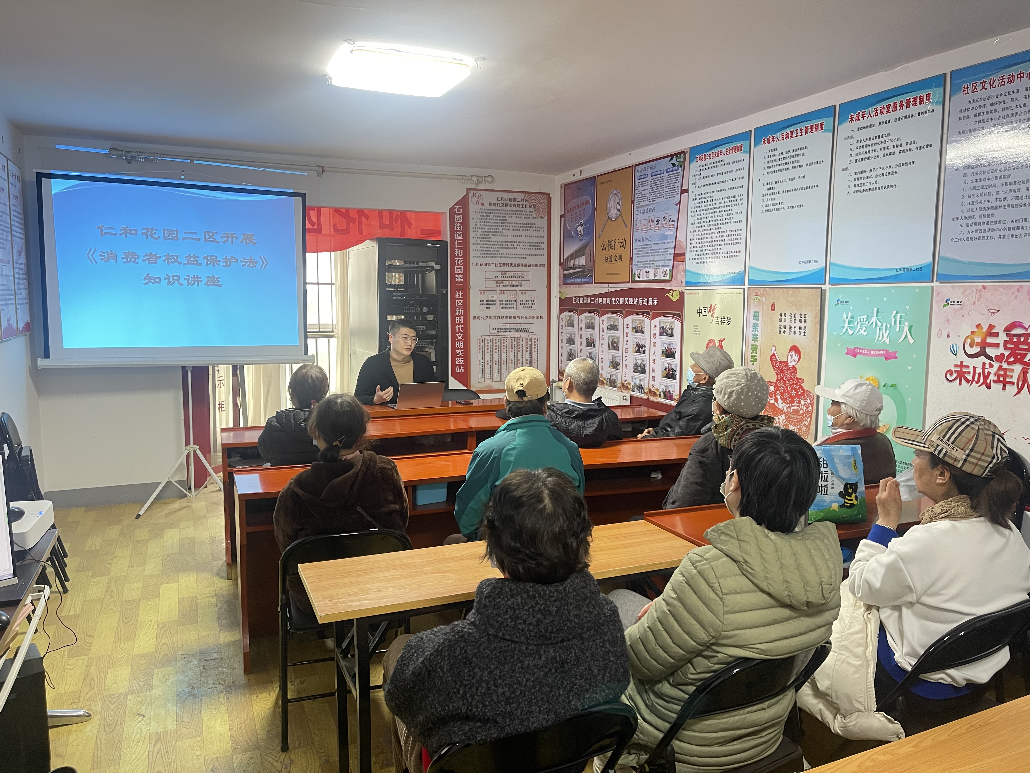 石园街道仁和花园二社区政策宣传志愿服务队人员为社区内志愿者,每周五在社区内向居民宣传各种政策法规。