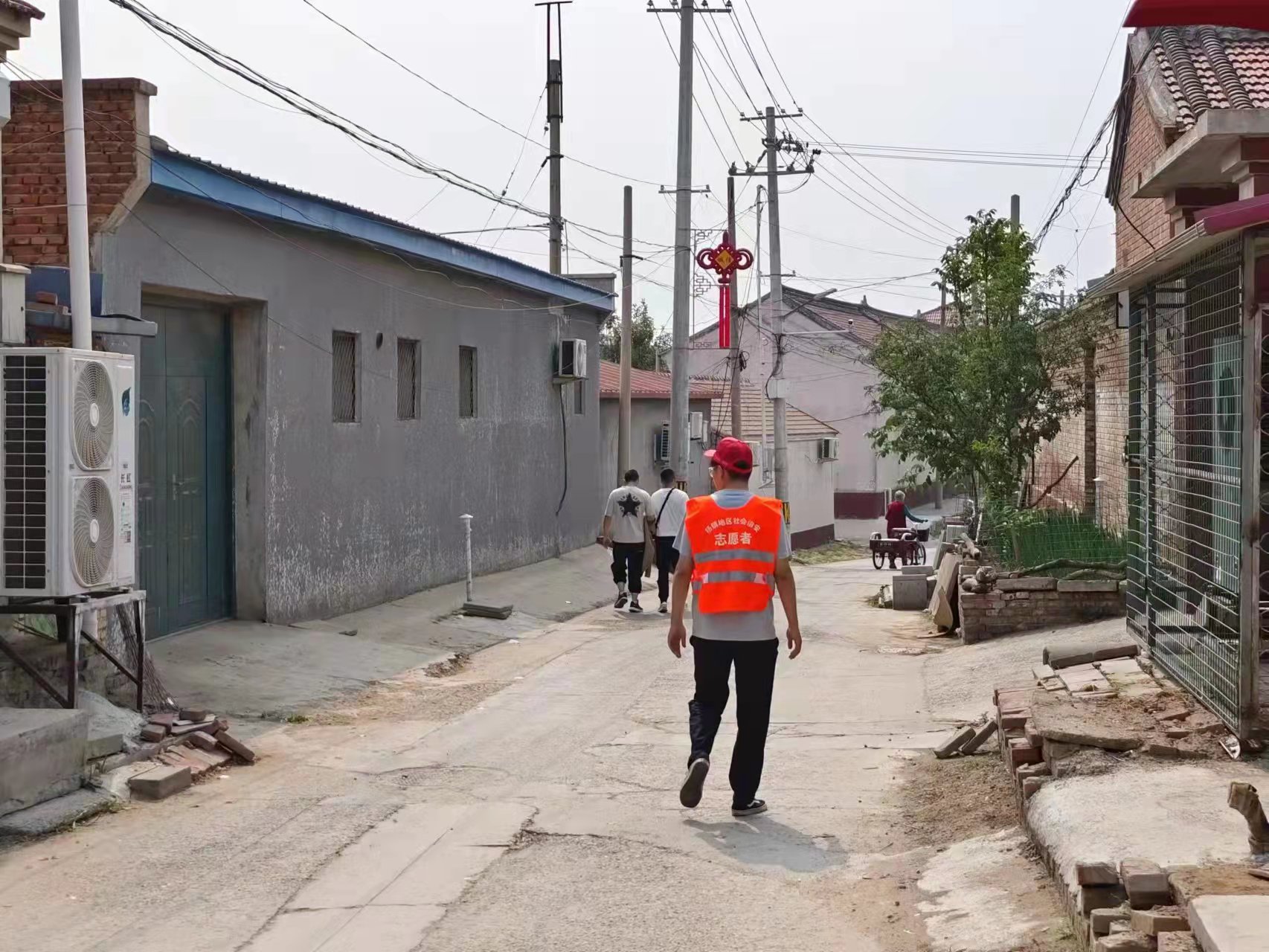 沙子营治安巡查服务队通过每天在街里巡视,寻找发现村内存在的安全隐患并且负责沟通协商解决。