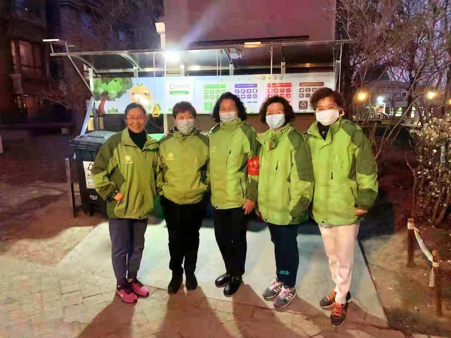 下图为2021年11月 天竺新新家园社区绿色环保志愿服务队桶前值守。