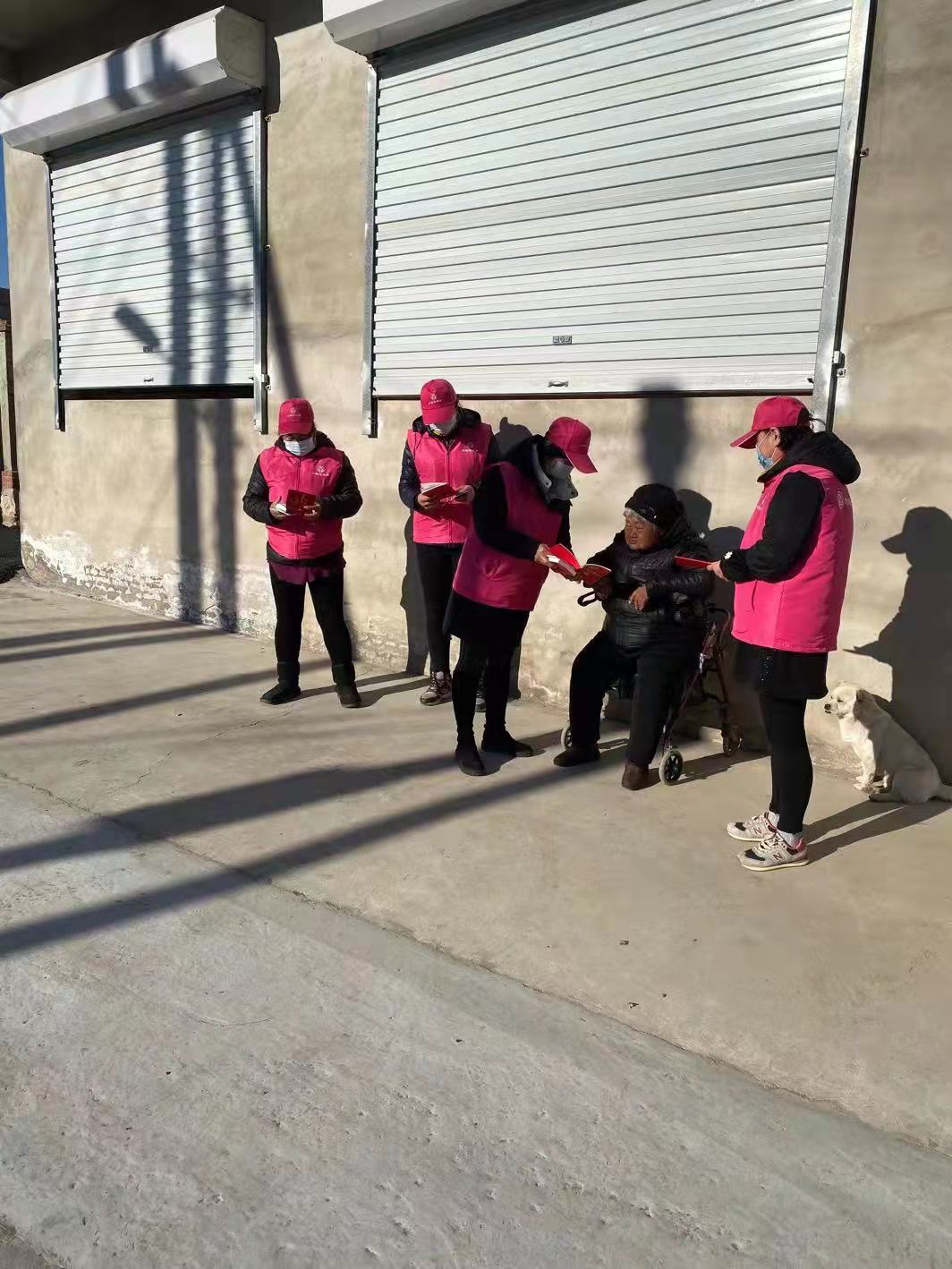 2022年 巾帼志愿服务队对村内老人进行防诈骗宣传。