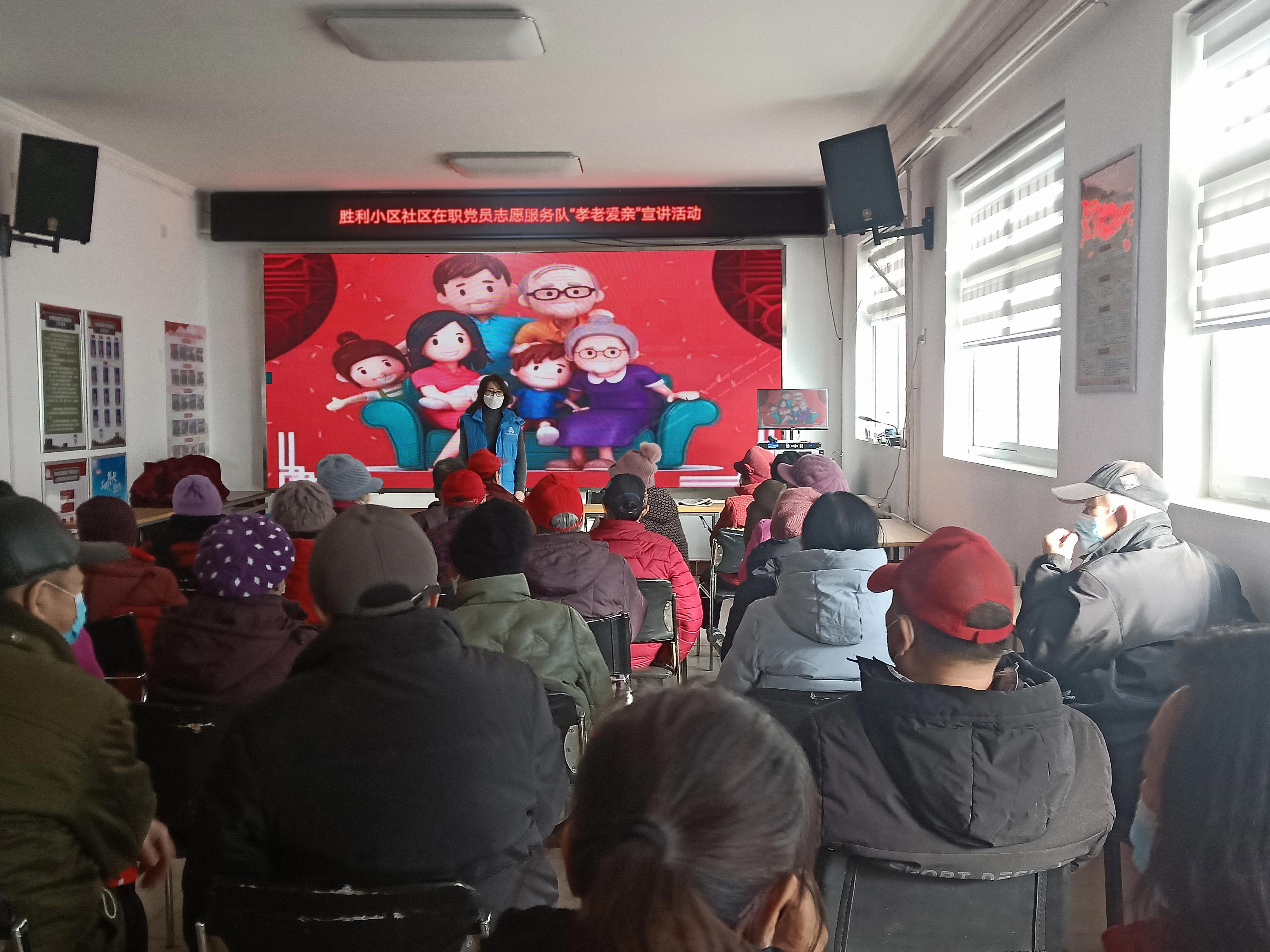 2023年1月31日胜利小区社区在职党员志愿服务队开展“孝老爱亲”故事宣讲活动。