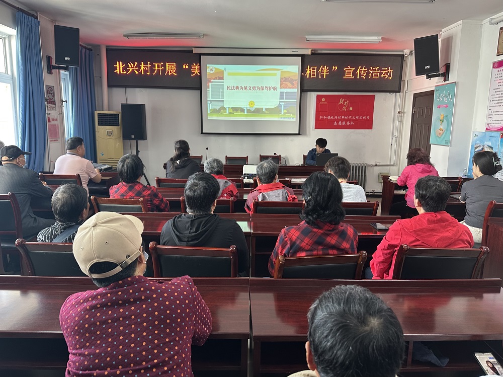 5月10日,北兴村德法教育志愿服务队开展“美好生活·民法典相伴”宣传活动。