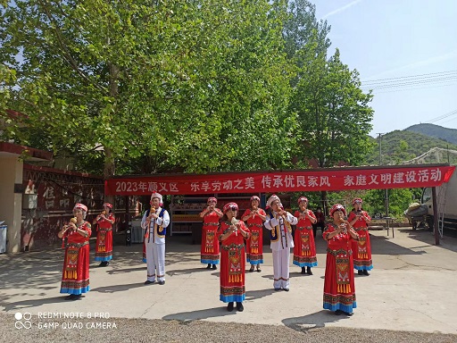 2023年5月1日马坡花园一区“丝之韵”葫芦丝队参加顺义区“乐享劳动之美 传承优良家风”家庭文明建设活动。