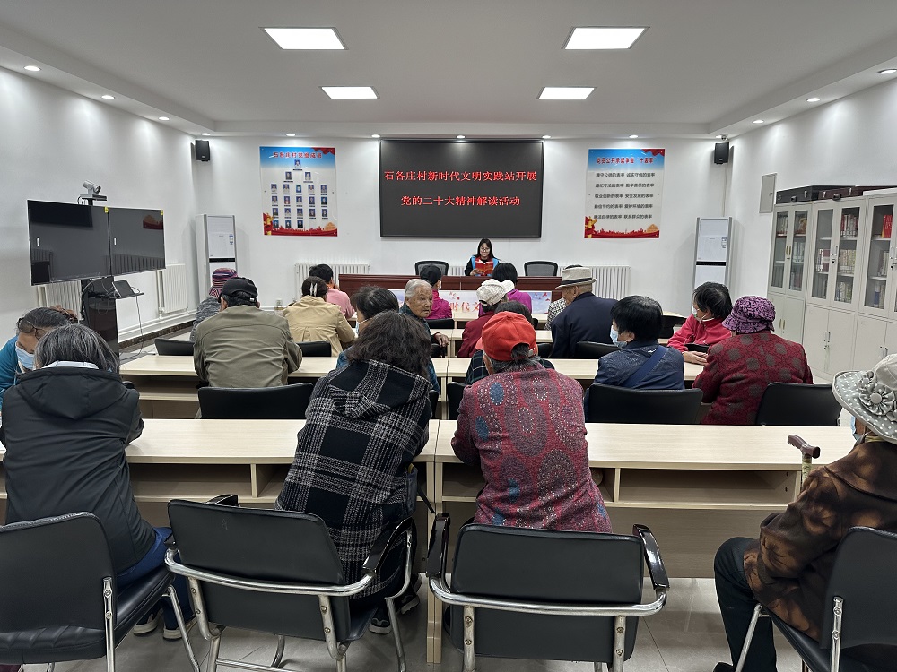 2022年石各庄村新时代文明实践站开展党的二十大政策解读活动。