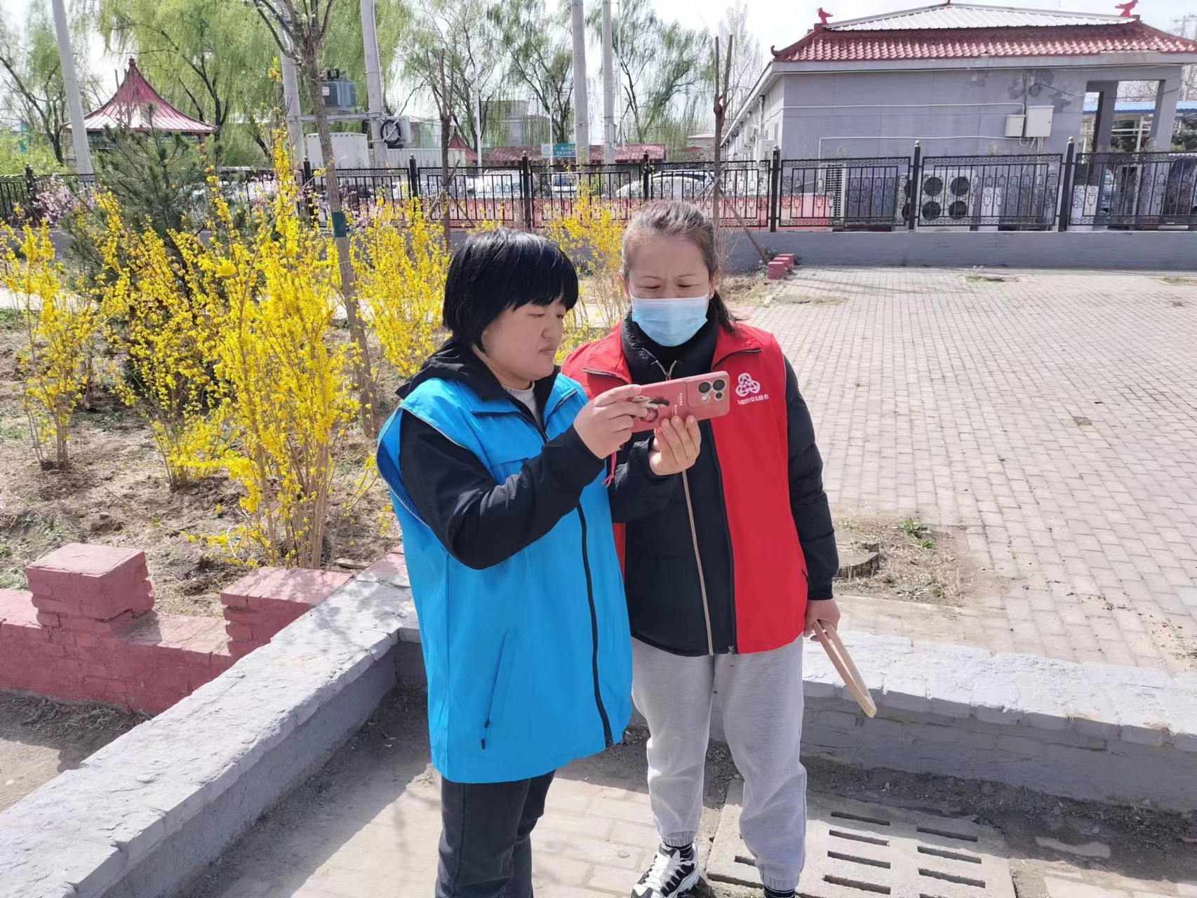 2023年4月15日毛家营村政策宣传志愿服务队向村民讲解惠民政策