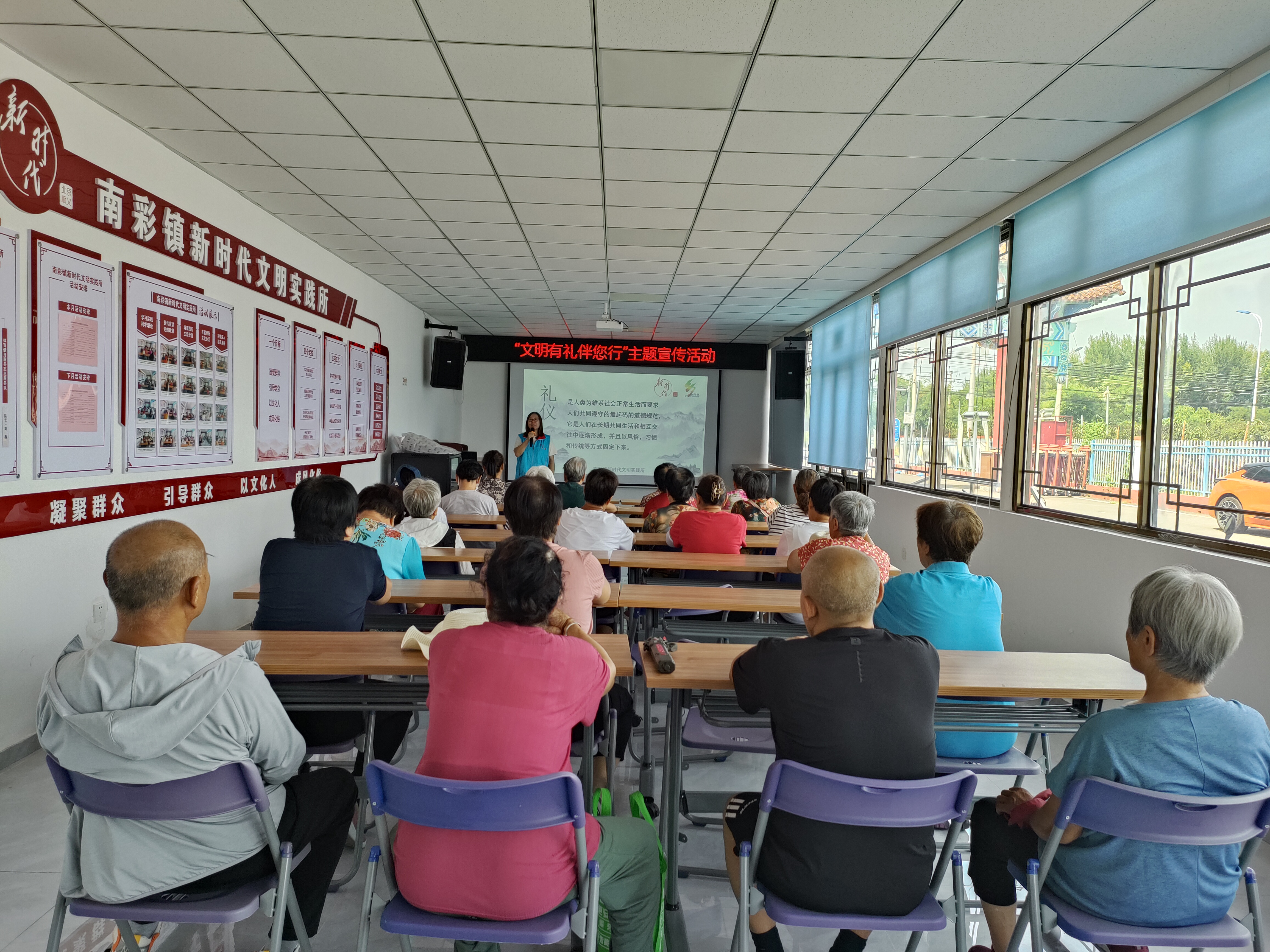 近日,南彩镇新时代文明实践所开展了“文明有礼伴您行”主题宣传活动,向群众普及文明礼仪知识,提升大家在公共场合及人际交往中的礼仪素养。