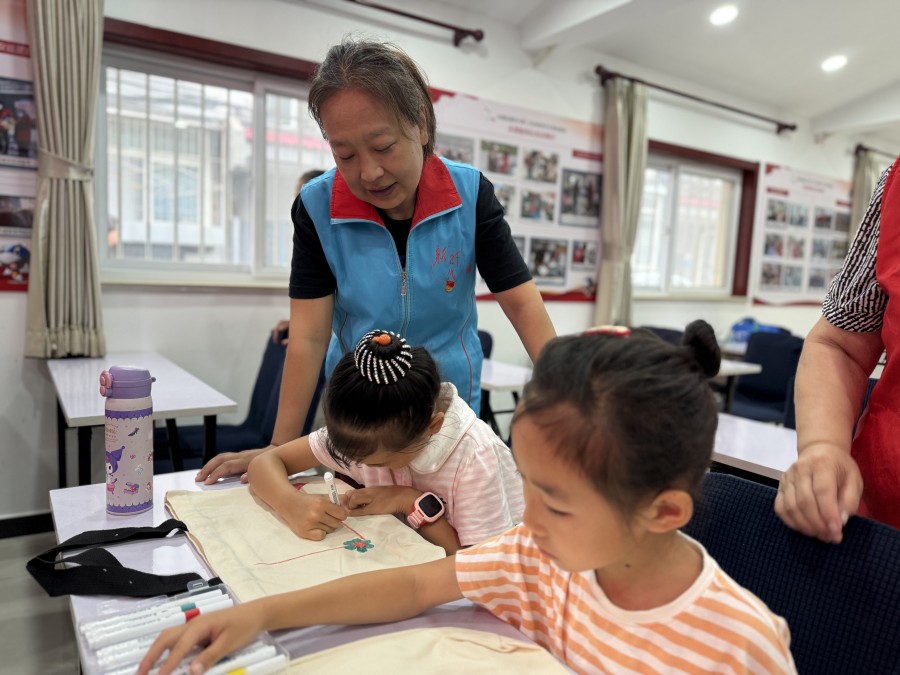 为期五天的托管服务,以“孝·红色记忆”故事汇为起点,引导孩子们铭记历史、传承红色基因;其后,“校·绘本故事奇遇记”让孩子们尽情享受绘本阅读的乐趣;“笑·活力悦动·协作大本营”则通过团队游戏,让孩子们在强健体魄的同时锤炼协作精神;“校·巧手时光编织手绳”重在锻炼大家的动手能力与专注力;“效·社区安全守护反诈知识讲座”聚焦现实安全需求,提升孩子们及社区家庭的反诈意识;最后以“校·环保帆布袋手绘”主题活动引导孩子们树立绿色生活理念。