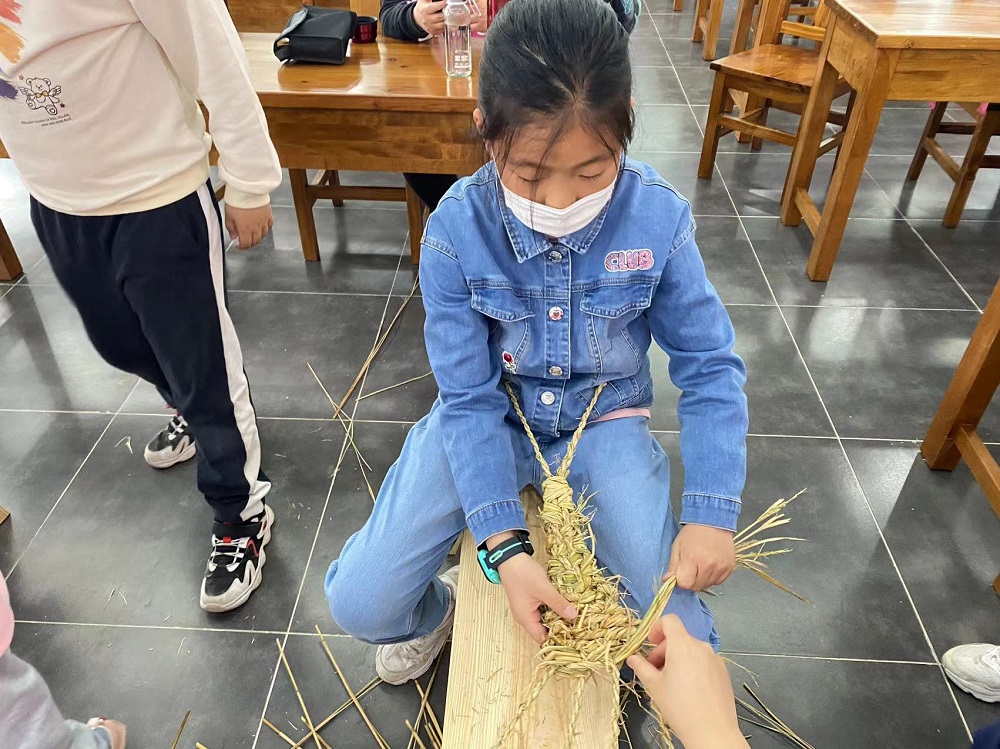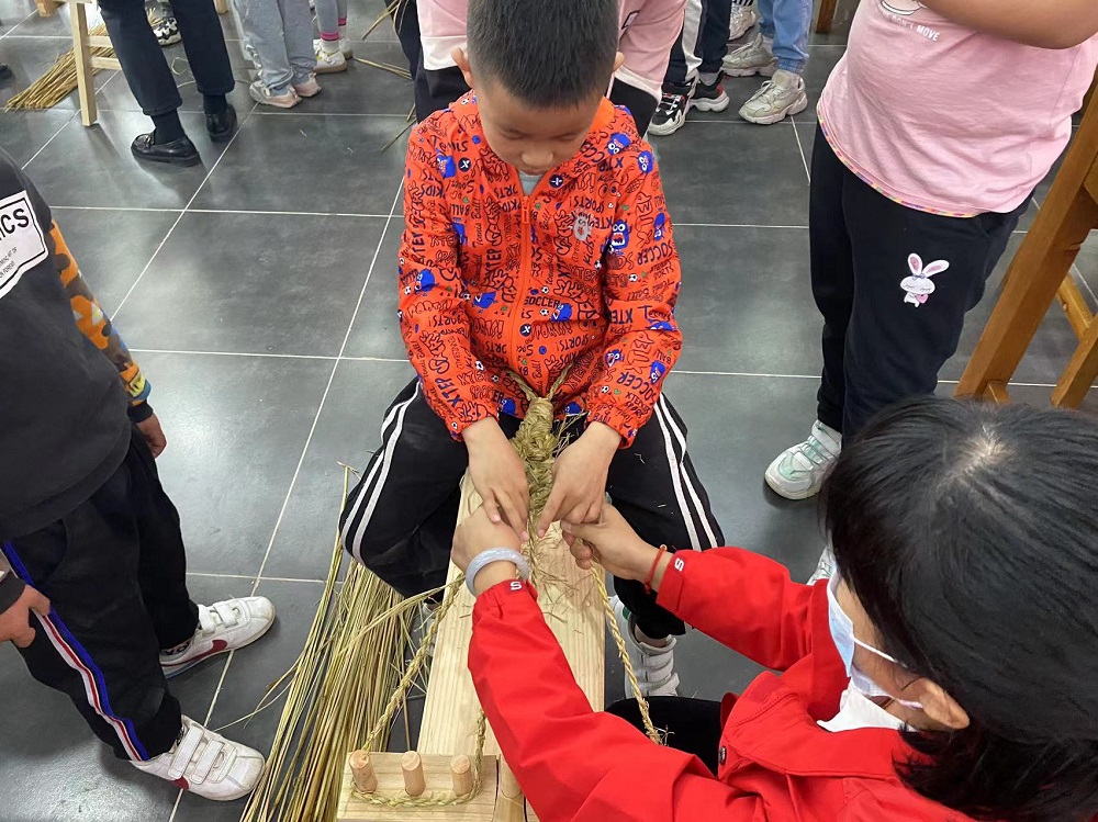在草鞋编制课堂中,新时代文明实践志愿者带领大家重温红色记忆,学习了解草鞋由来与操作步骤,在制作中将内心的敬意诉诸在草鞋上,深刻体会革命前辈英勇战斗、不怕牺牲的坚强决心。