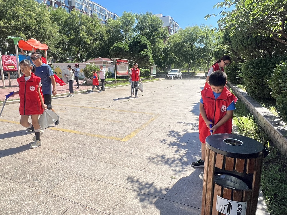蓝天社区新时代文明实践站开展青少年环境清洁志愿服务活动
