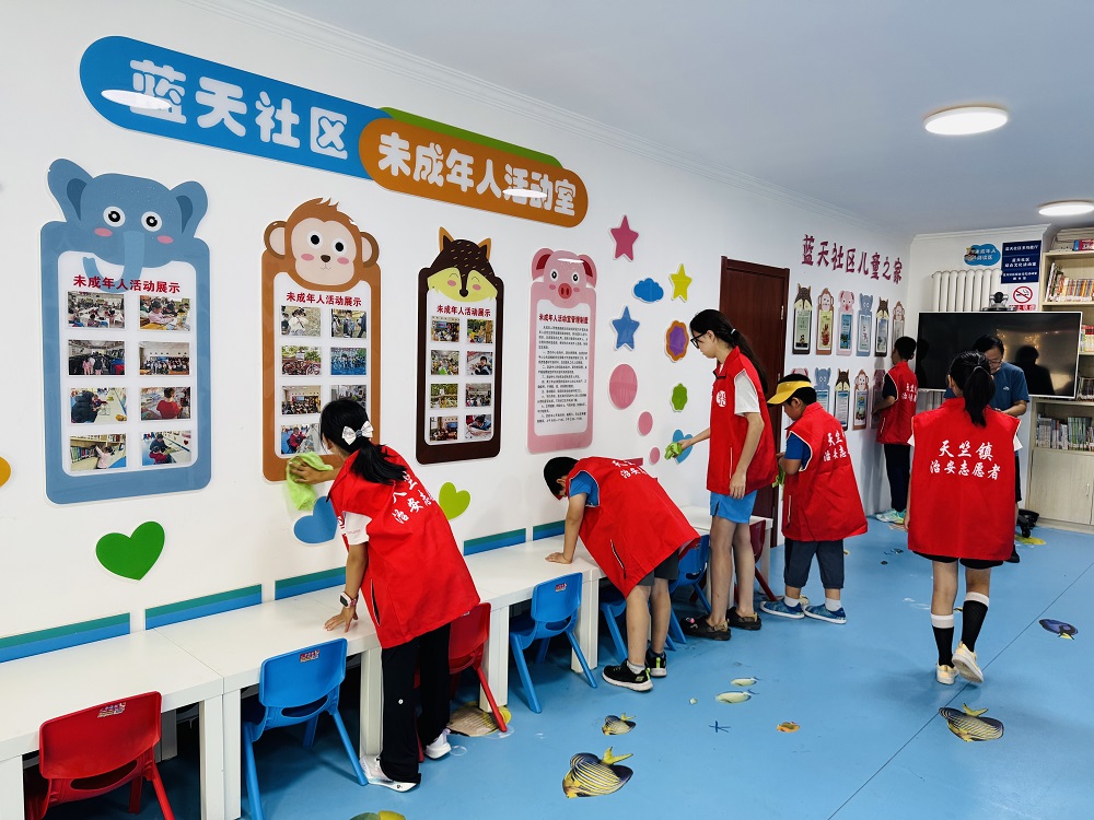 暑假期间,蓝天社区新时代文明实践站组织社区青少年开展了环境清洁志愿服务活动,围绕 “捡拾园区白色垃圾”“擦拭图书室” 两大主题,让青春力量在文明实践中绽放光彩。