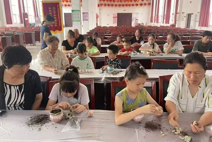 三、在小段村开展“马赛克花瓶”制作活动