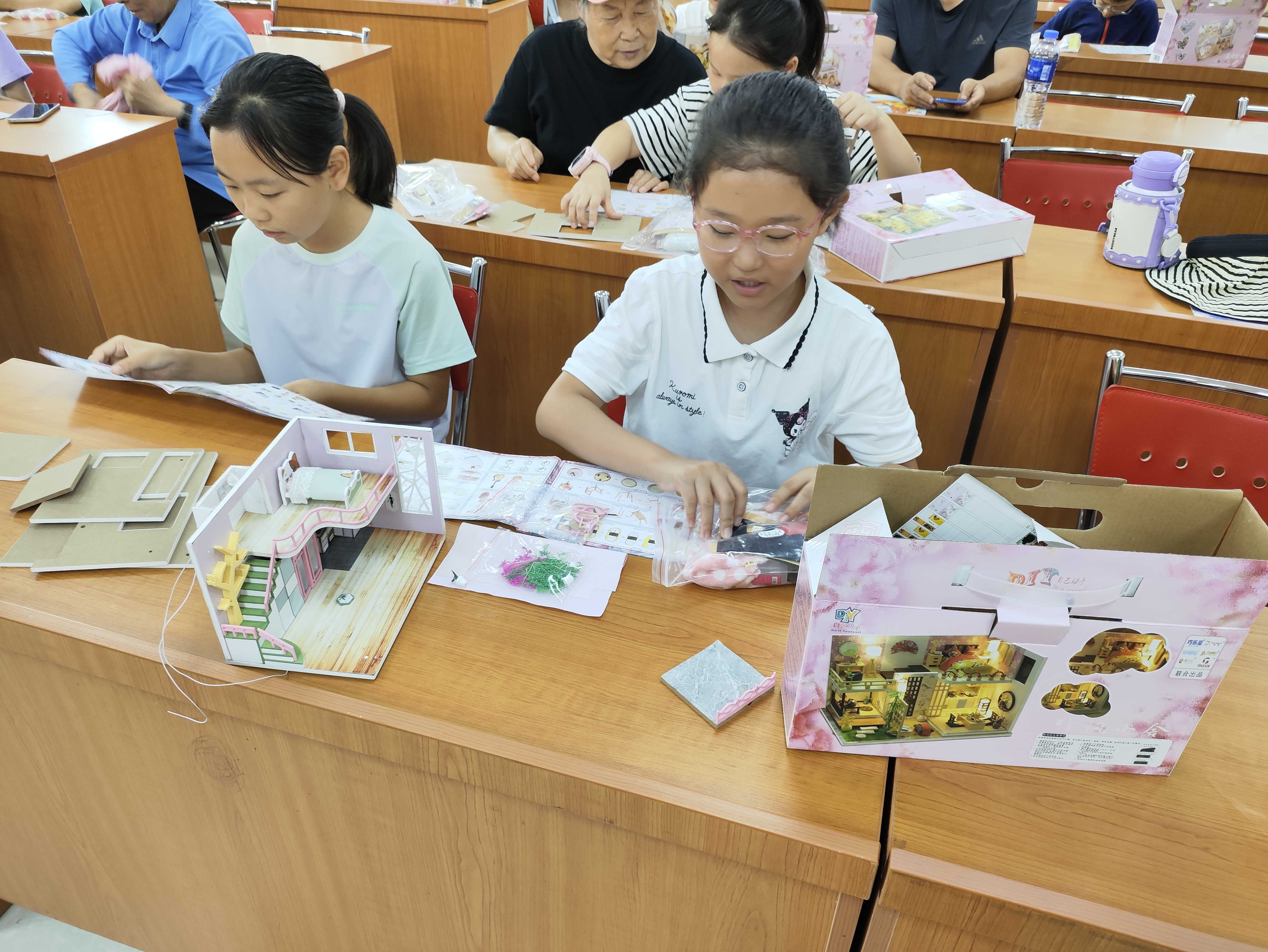 活动中,在工作人员的讲解下,家长和孩子们互相协作,一起对照图纸确认零件位置,小心翼翼地拼接出房屋框架,最后粘贴上门窗装饰,慢慢地,一座座色彩明快、制作精致的“迷你房子”逐渐成型,孩子们和家长都体会到了手工制作的乐趣。