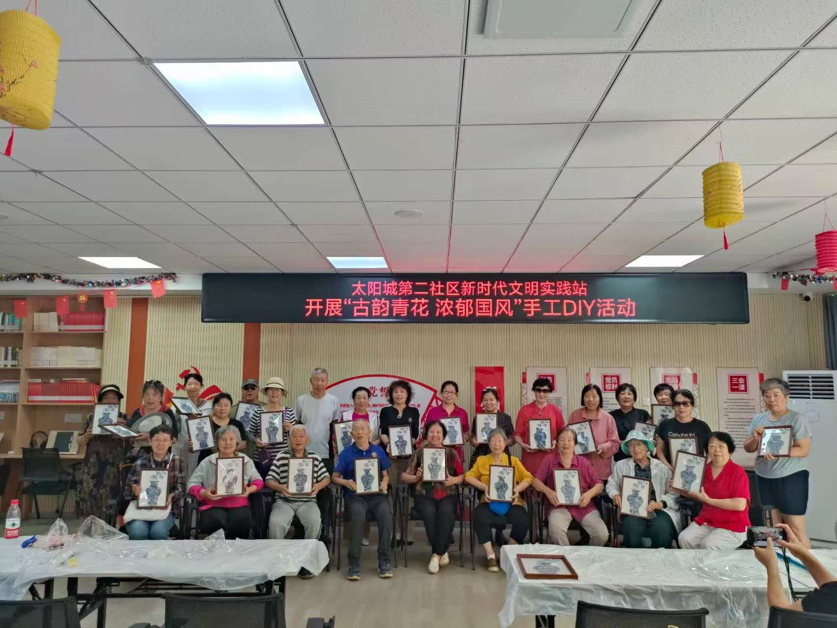 仁和镇太阳城第二社区新时代文明实践站开展“古韵青花 浓郁国风”手工制作体验活动