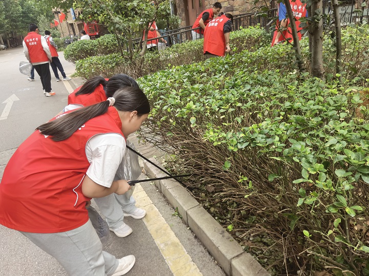 张镇新时代文明实践所开展“校社联动聚合力 社区环境焕新颜”主题志愿服务活动