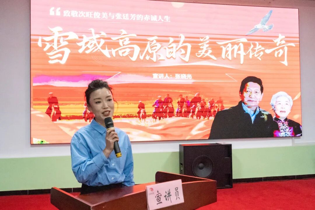 空港街道工作人员张晓光以《雪域高原的美丽传奇》为题,分享次旺俊美、张廷芳夫妇一生坚守在雪域高原、践行对党忠诚的誓言,增进两地交流和民族情感的感人故事。