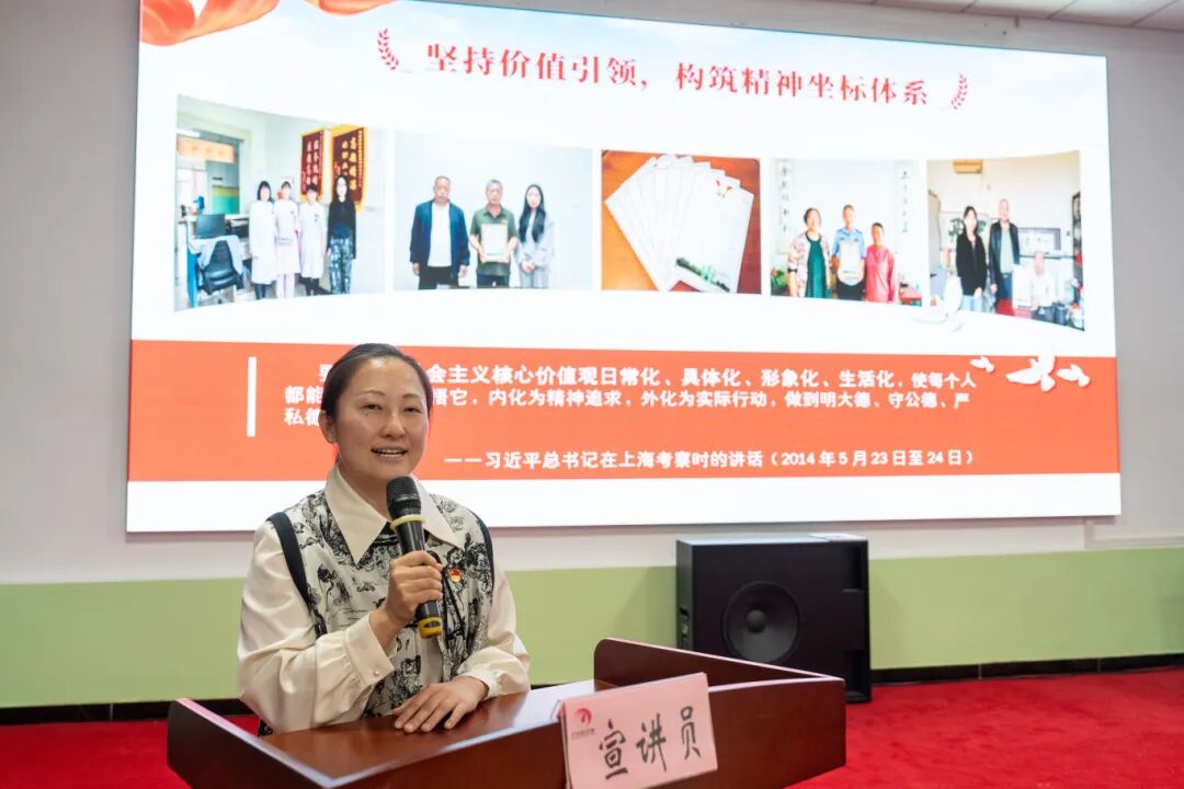 杨镇青年干部包婧文带来宣讲《读懂总书记口中“人民”的分量》,通过抢险救灾、接诉即办等实际案例,帮助大家深刻理解“人民”的重要性,号召更多干部在新时代新征程上贡献力量。