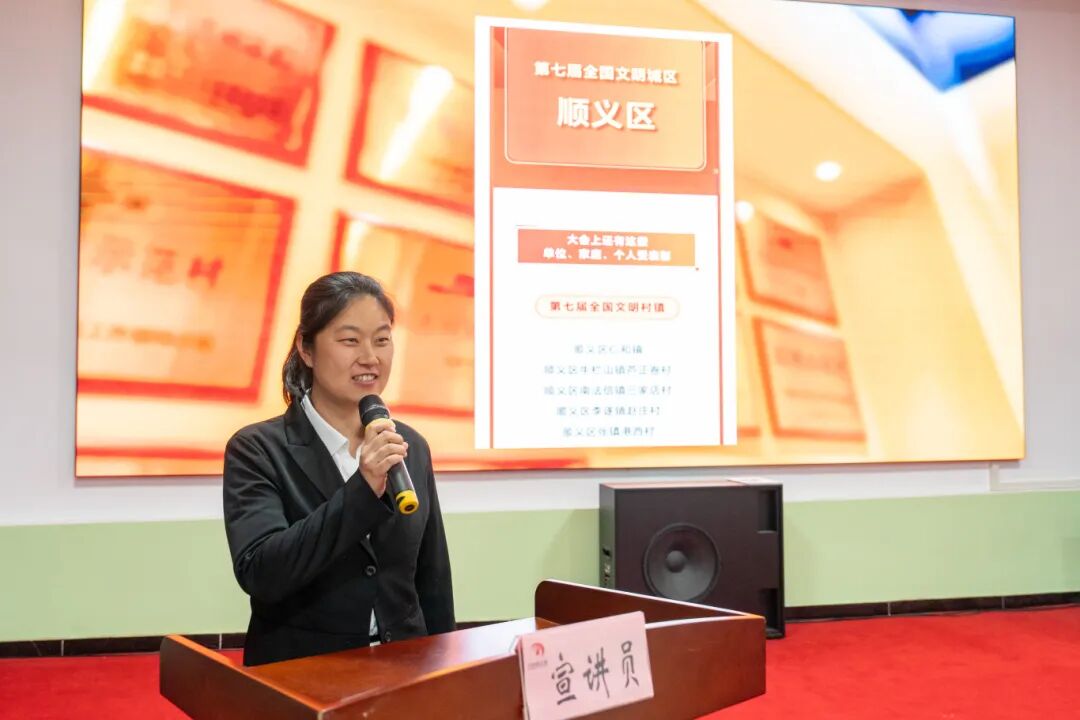 牛栏山镇芦正卷村第一书记王静娴带来宣讲《文明之花绽新颜》,以芦正卷村获评“全国文明村”为引,用方言讲解政策、通过村事传递精神,分享了自己带领村民群众推动乡村振兴的奋斗故事。