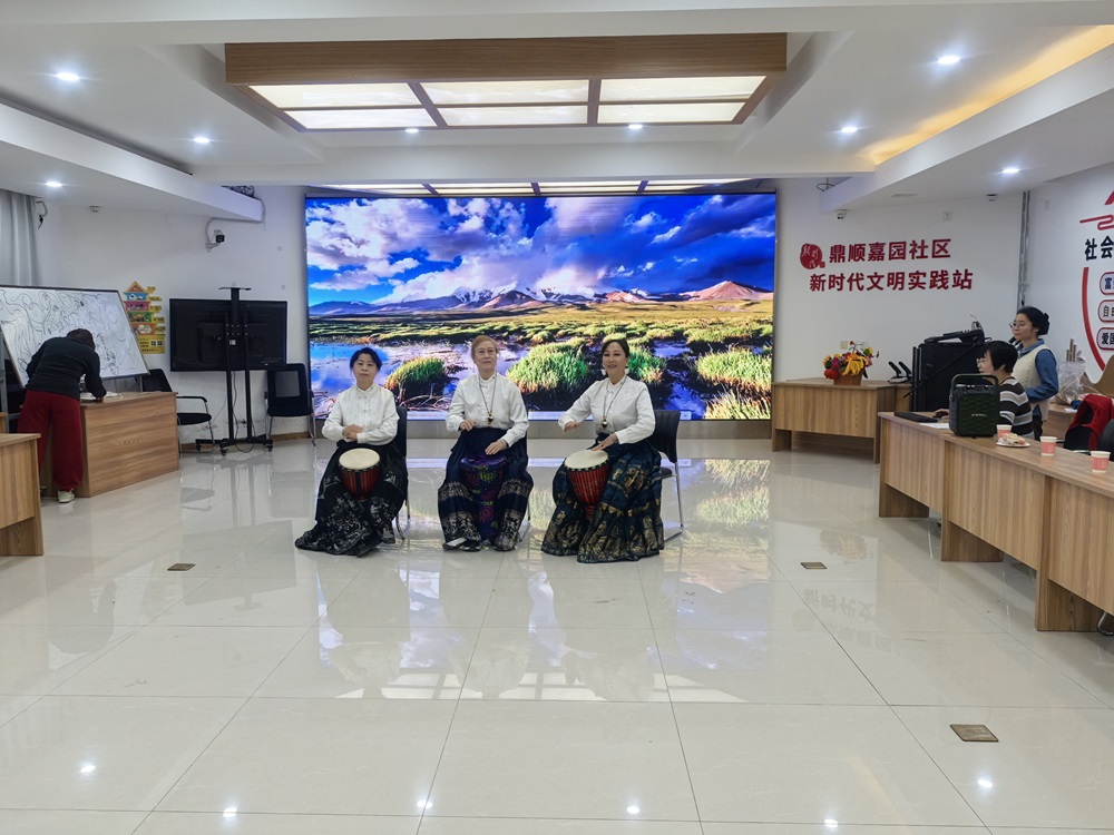 活动中,工作人员向长辈们致以“安康吉祥”的重阳节问候,并对老年志愿者助力社区发展表达感谢。随后,文艺表演正式开始,非洲鼓队带来《吉祥》,以激昂鼓点传递原始活力,仿佛将大家带入广袤天地;舞蹈《找妹妹》节奏欢快,表演者俏皮的步伐尽显“桑榆非晚”的风采;小品《真假骗局》由社区志愿者自编自演,以贴近生活的场景提醒大家防范诈骗,兼具趣味性与警示性;独唱《我爱你中国》旋律悠扬,唱出对祖国的深切热爱;合唱队的《夕阳红》则温情脉脉,道尽对长辈的美好祝福。