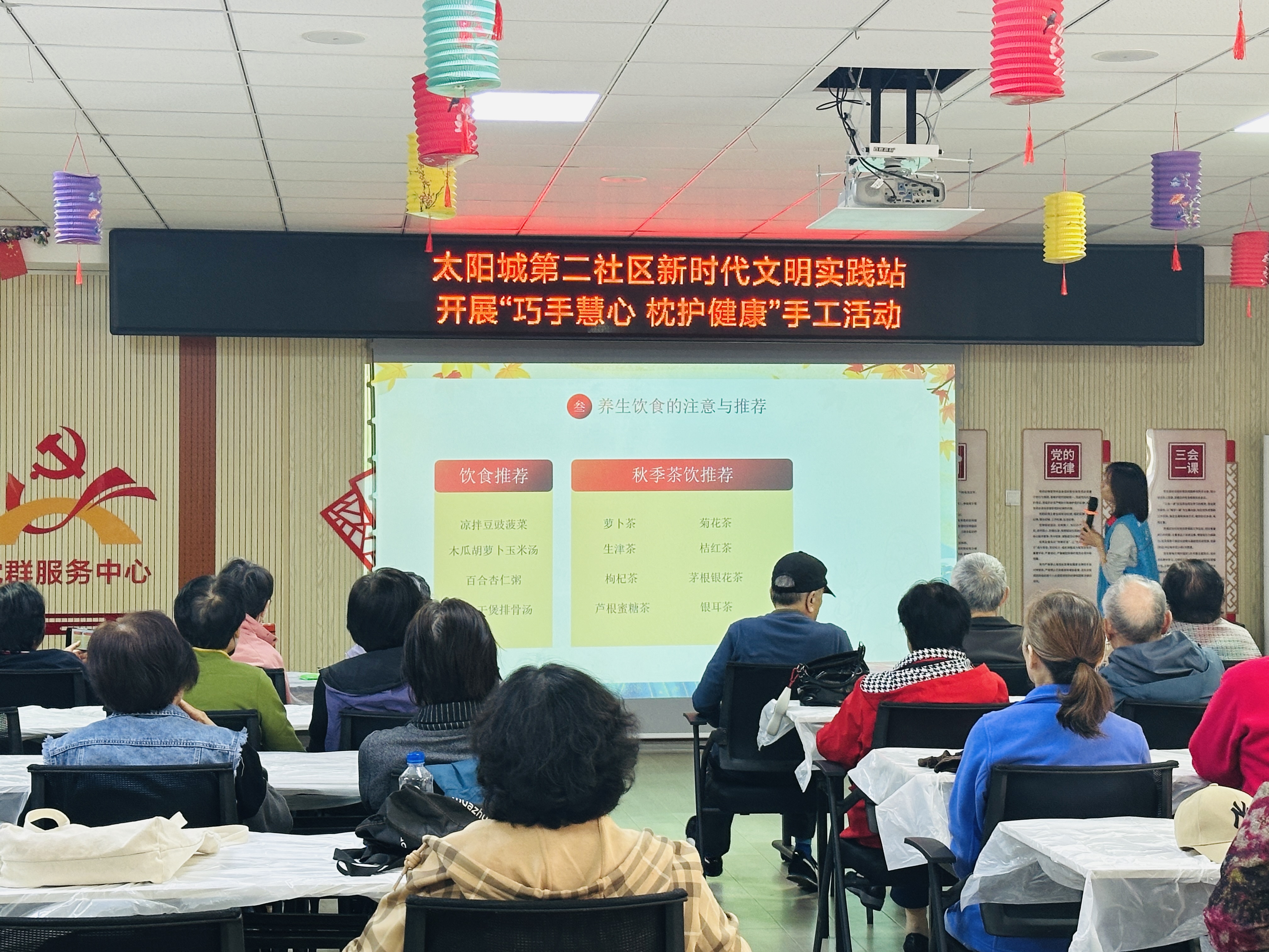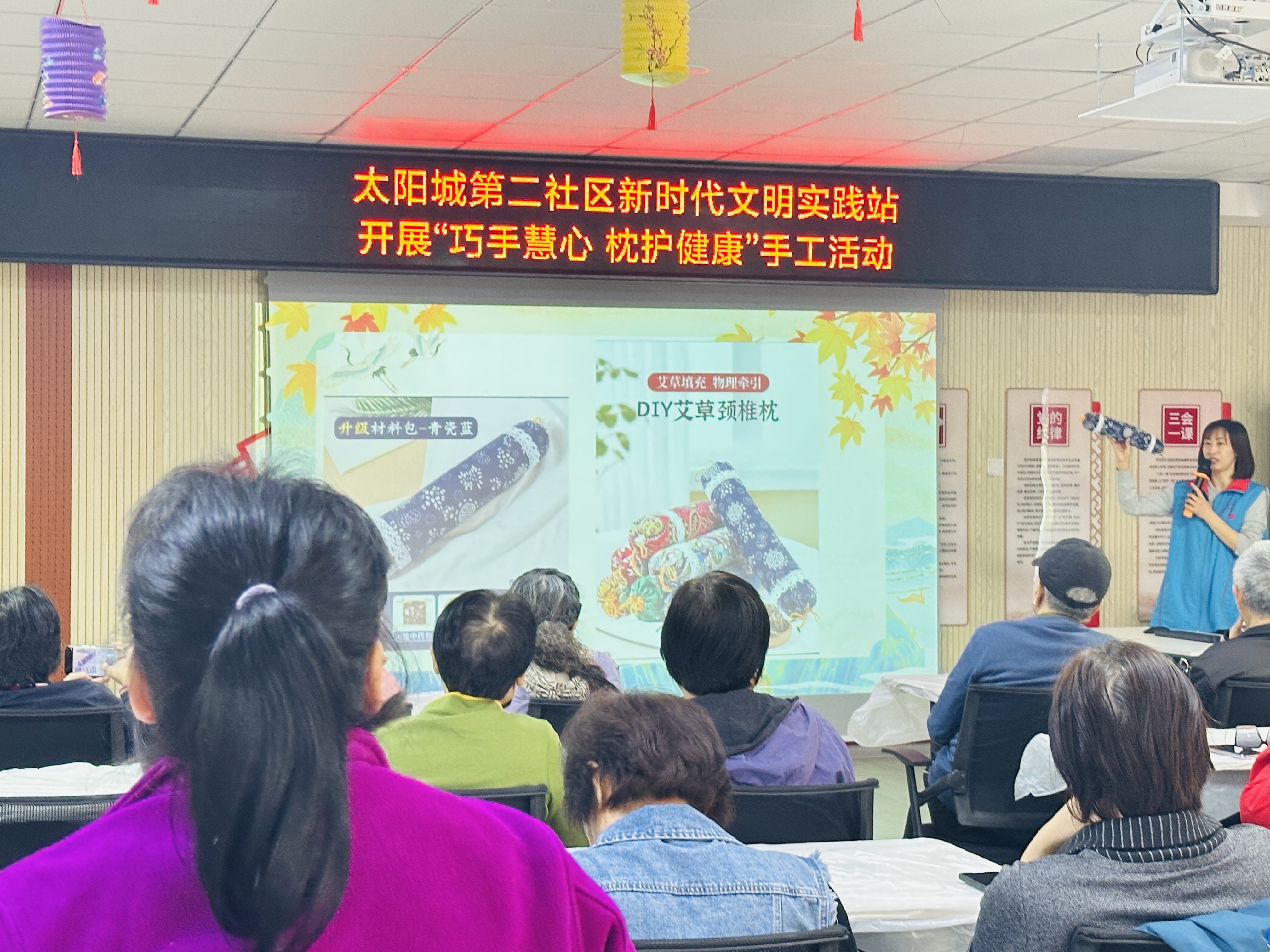 为丰富社区居民的精神文化生活,普及传统养生知识,近日,太阳城第二社区新时代文明实践站开展了“巧手慧心 枕护健康”艾灸枕手工制作活动,吸引了30余名居民热情参与。