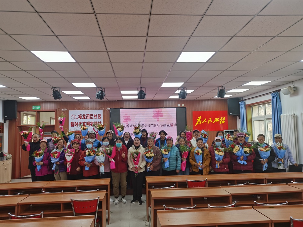 岁岁重阳,今又重阳。为传承中华民族敬老、爱老的传统美德,丰富社区老年居民的精神文化生活,近日,光明街道裕龙四区新时代文明实践站开展了“花香寄情 敬老崇老”重阳节主题插花活动,邀请社区老年朋友欢聚一堂,共庆佳节。