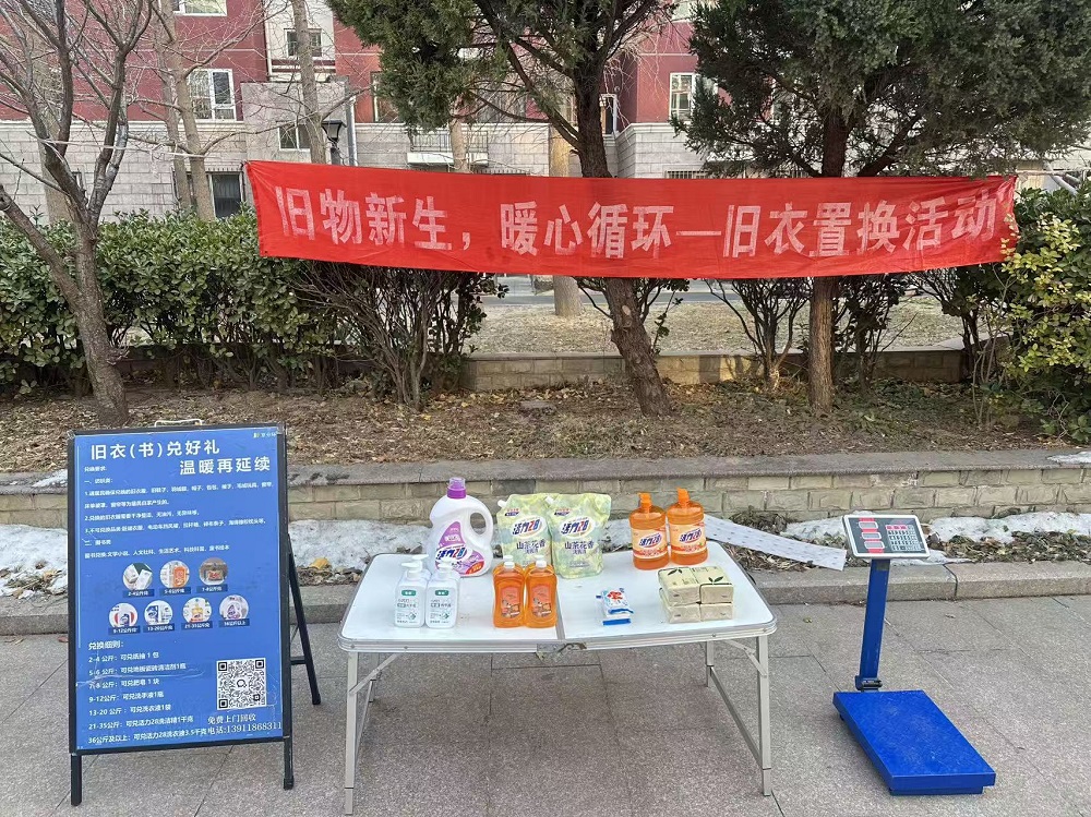 活动中,工作人员在社区微信群发布通知,详细介绍活动规则、可兑换品类,居民们积极响应,纷纷整理家中干净闲置衣物与完好书籍参与兑换。兑换现场划分衣物、书籍称重区和礼品兑换区,工作人员与志愿者分工协作,有序为居民们登记物品、分类整理,并根据物品数量与质量,为大家兑换洗衣液、洗手液、纸巾等实用物品。