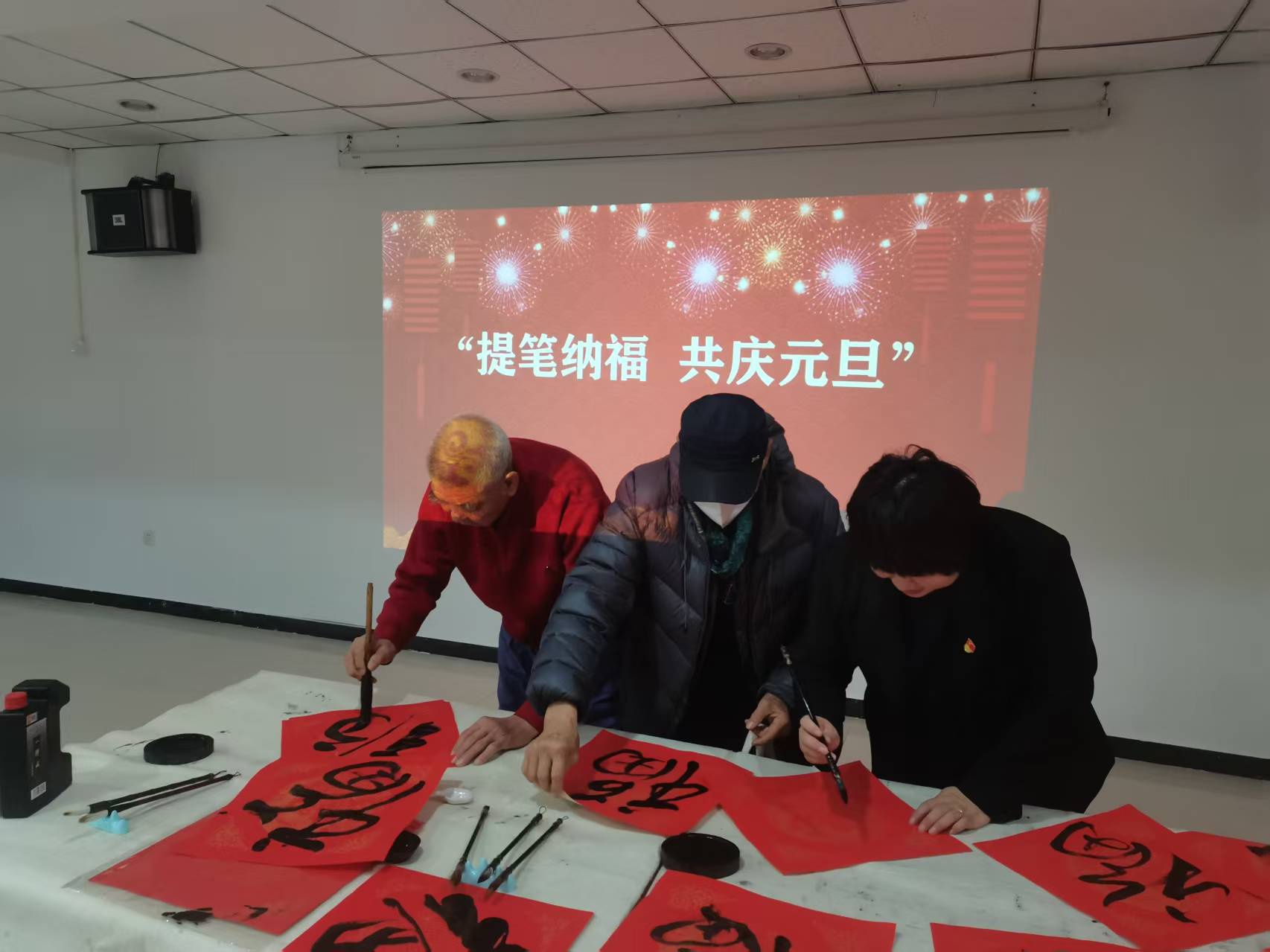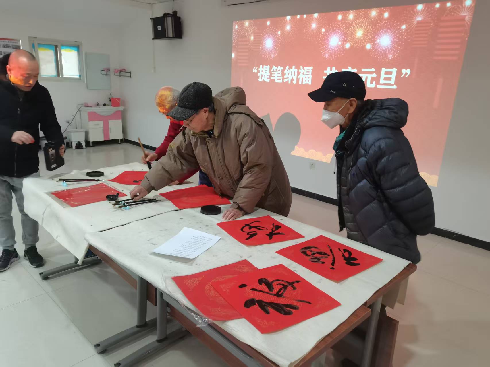 光明街道滨河二区新时代文明实践站开展“提笔纳福 共庆元旦”主题活动