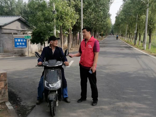 活动中,志愿者们在镇内主要路口开展文明交通宣传引导活动,引导来往机动车和行人遵守交通规则,对驾乘电动车、摩托车不戴安全头盔等交通违法行为进行劝导、纠正。同时,将车辆有序地进行摆放,劝导乱停乱放车辆等行为,进一步恢复农村整洁面貌。