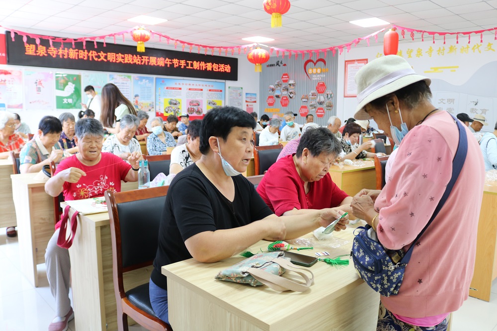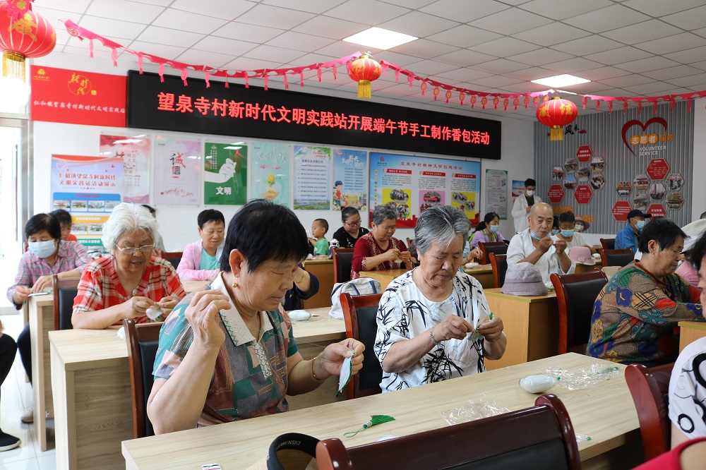 仁和镇望泉寺村新时代文明实践站开展“巧手制香囊 浓情迎端午”香包缝制主题活动
