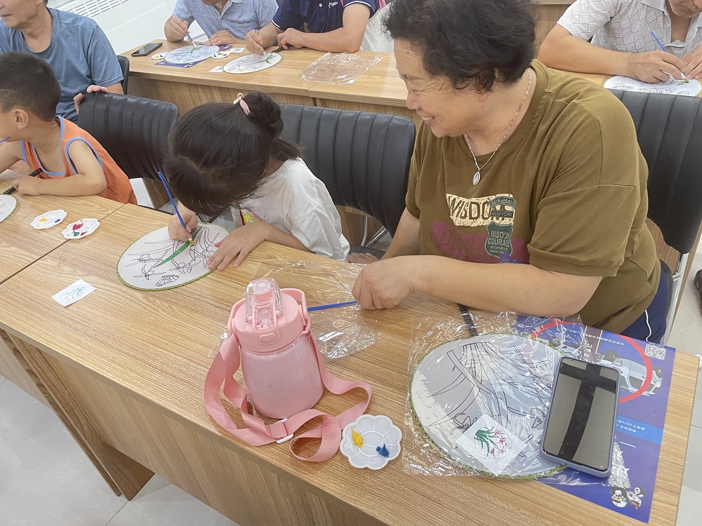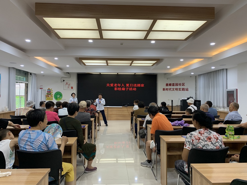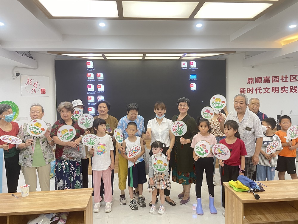 仁和镇鼎顺嘉园社区新时代文明实践站开展“关爱老年人 夏日送清凉”彩绘扇子活动