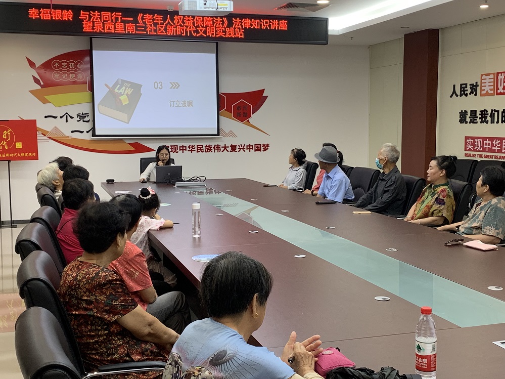 旺泉街道望泉西里南三社区新时代文明实践站开展“幸福银龄 与法同行”《老年人权益保护法》法律知识讲座