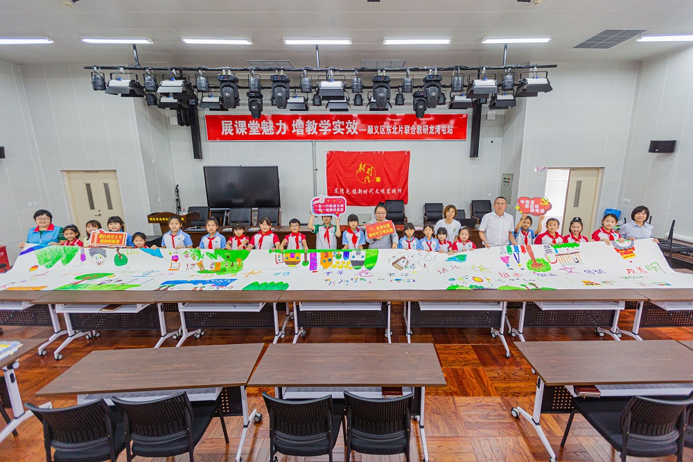 为深入学习贯彻党的二十大精神,大力弘扬和践行社会主义核心价值观,助力全国文明城区创建,龙湾屯镇新时代文明实践所联合镇中心小学校开展“十米长卷绘文明”活动,20余名学生及志愿者参加。