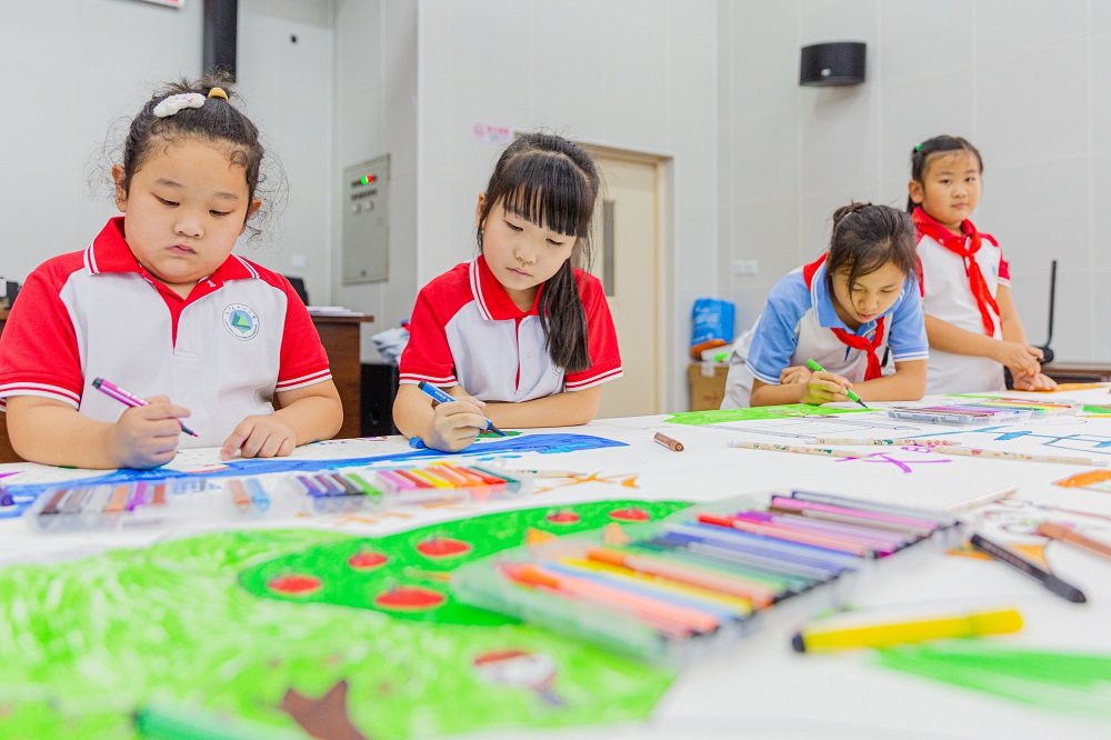 学生们充分发挥想象力,用五彩斑斓的画笔在铺开的长轴画卷上以社会主义核心价值观、文明创建为主题,绘就自己心中的龙湾家园。长长的作品,不仅表达了小朋友们对美丽家园的热爱,更是展现了小朋友们丰富的想象力,把自己对文明城区、美好环境的向往变成一个个鲜活的场景,在画卷上一一呈现。