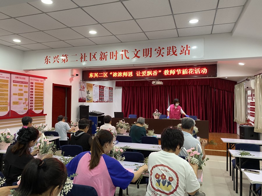 东兴二区新时代文明实践站开展“浓浓师恩 让爱飘香” 教师节插花活动