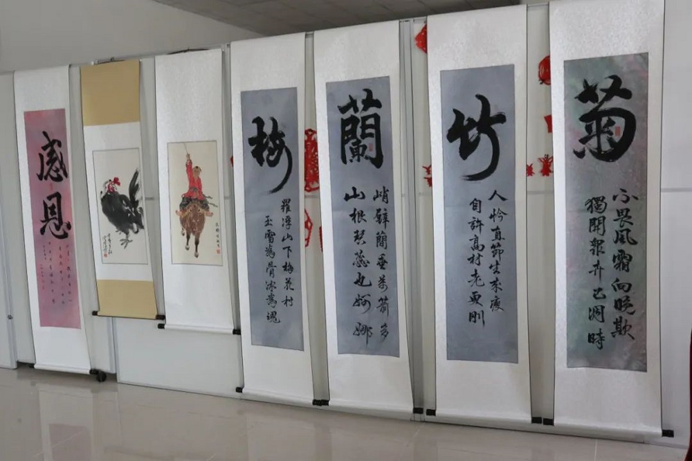 此次书画展集思广益、广泛征集,共展出来自镇域内书画爱好者、机关工作人员及企业工作人员的书画作品47幅。展出作品不仅有精心匠制而成的长卷书画作品《东方巨龙》,花中四君子《梅兰竹菊》系列书法作品,还有多篇短幅书画作品。画作颜色饱满,绘制的形象栩栩如生,书法作品潇洒飘逸。