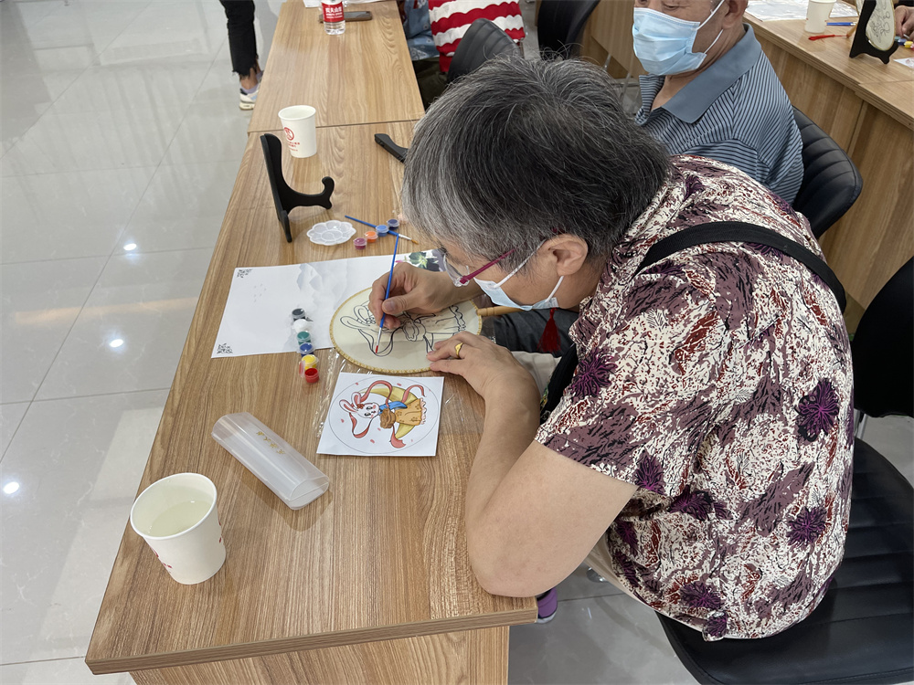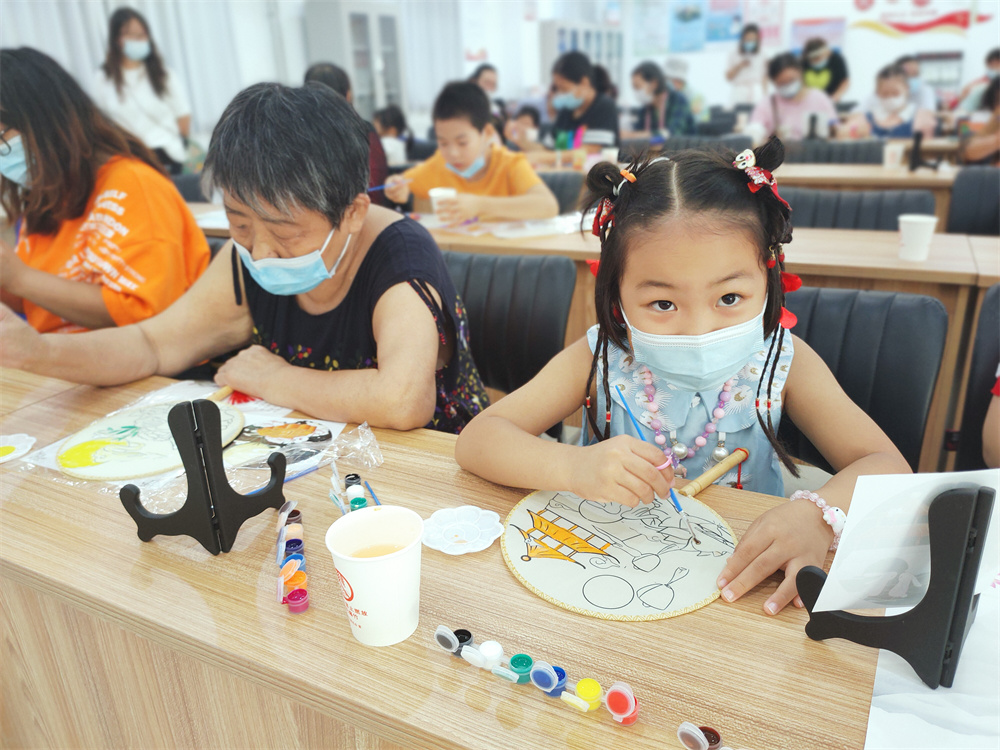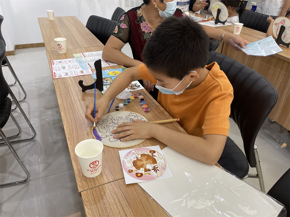 实践站工作人员通过组织开展传统游戏“猜灯谜”,让居民们在寓教于乐中了解了中秋文化。随后,进行了一场别样的手工团扇制作,家长们握着孩子的小手,用灵动的画笔蘸取多彩的颜料,在寓意团圆的团扇上尽情描绘,每一位居民都在快乐的时光中亲身体验传统节日的魅力。