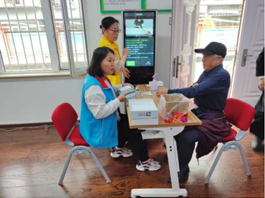 活动开始,工作人员先为每位残疾人录入了基本信息,然后用健康检测仪器一对一量血压、测血糖,并细致地告诉每位残疾人如何在家使用检测仪器,以及如何依据检测结果,判断日常生活需要如何调整,比如适度进行一些运动、合理安排膳食、少吃盐等,由其现在是秋冬交替的季节,属于感冒高发期,要时刻做好自我防护。