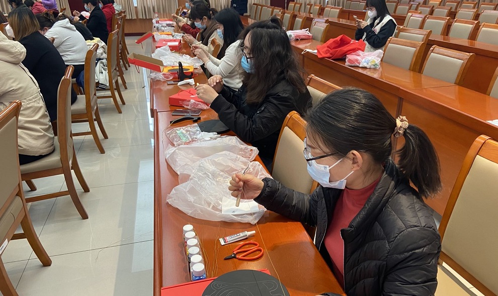 张镇3月8日妇女节组织开展“魅力非遗,景泰蓝金丝采砂画”技能培训活动