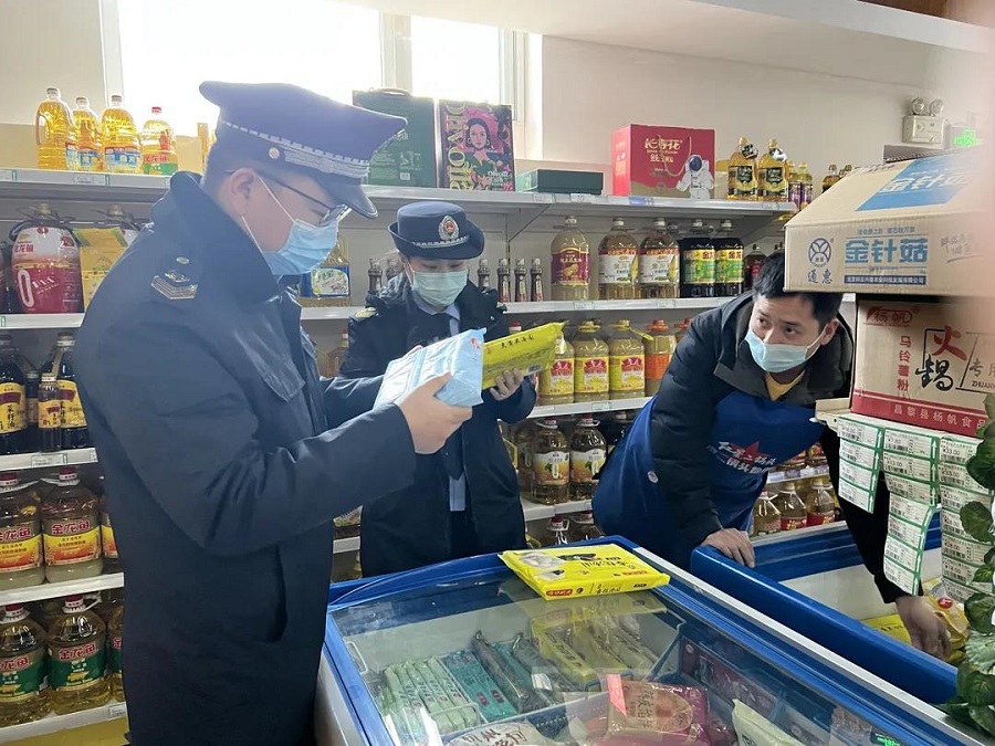 李遂镇“安全护卫队”上线强化监管、督导检查,全方位护航镇域城市运行安全稳定,为维护元宵节期间食品安全确保疫情防控精准到位。李遂市场所集中开展节前食品安全及疫情防控监督大检查,做到食品、防疫两手抓,双项“安全”同落实。工作人员重点对辖区超市、食杂店、药店等地进行检查,查看了各经营场所是否严格实行扫码测温、口罩佩戴、清洁通风等防疫措施,并仔细查看了售卖食品的生产日期、保质期、价格公示、索证索票、进销货台账等方面情况,为大家的元宵/汤圆注入“安心馅儿”。