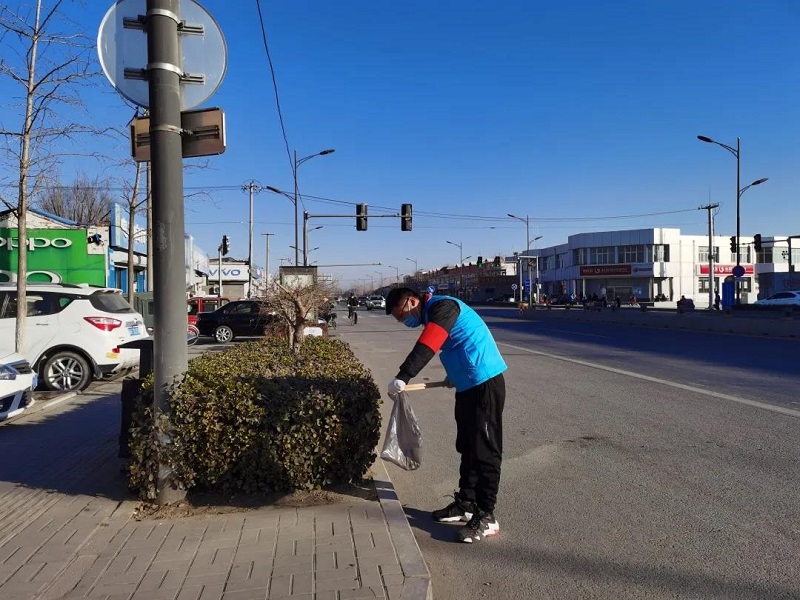围绕创城实地检查测评标准,机关干部、党员志愿者保持主路街道两侧宣传栏、灯箱等设施干净整洁,捡拾道路两侧白色垃圾,做好公共区域环境卫生维护工作。