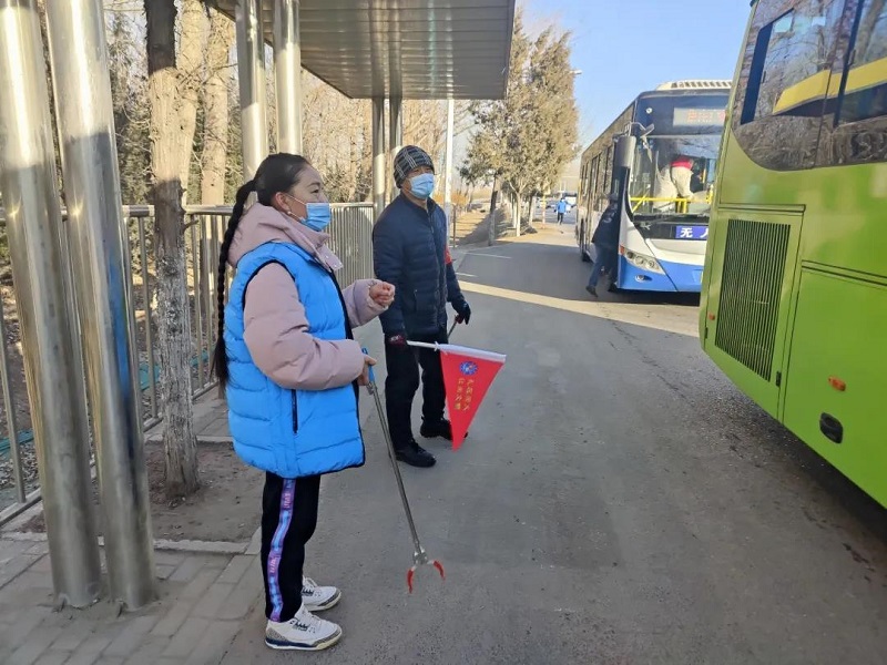 在镇域公交车站引导行人乘客佩戴口罩,保持安全距离,做好个人防护,排队候车、有序乘车。机动车、非机动车有序规范停放,并及时清理车站周围白色垃圾,确保环境卫生干净整洁。