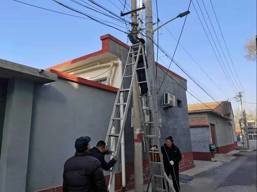 通过梳理绑扎的方式,对空中“飞线”杂乱、挂落、冗长等问题进行集中整治,确保走线布局清晰、面貌整洁,努力为镇域百姓打造一个平安、和谐、幸福的居住环境。