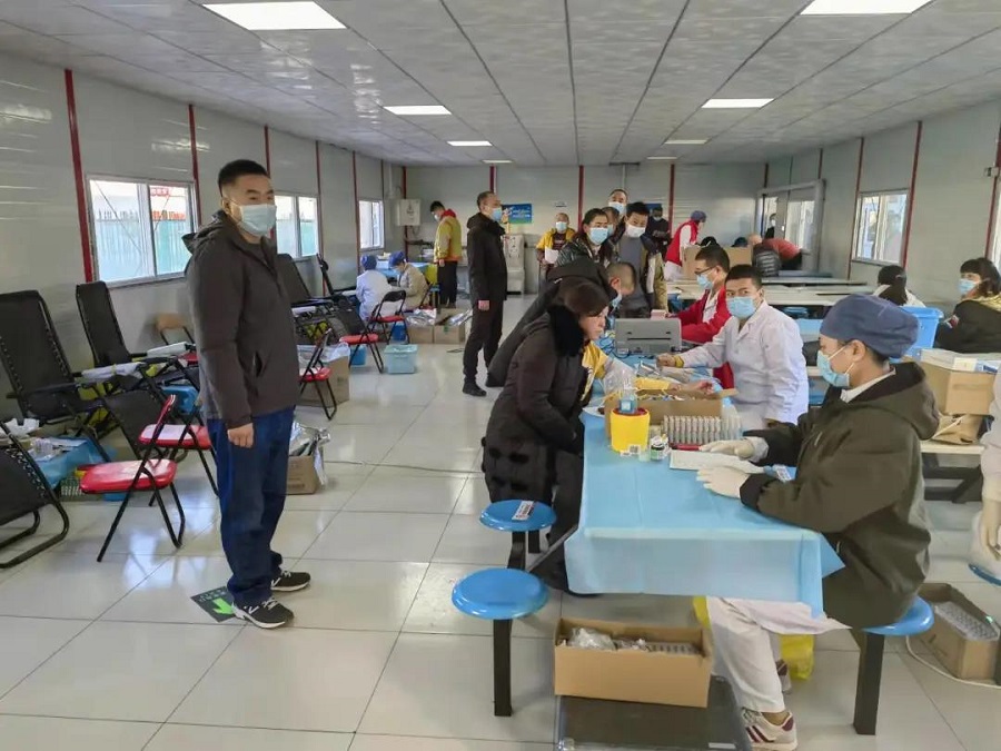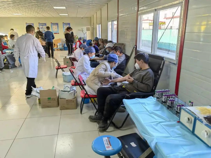 献血点还有体检区、献血区、化验区和休息区,体检区域医护人员会给参与者测量血压,检测血液血型以及是否可以献血。检测合格后,志愿者就可以献血了。献血的规格分为200cc、400cc,由志愿者自主决定。在活动现场,还有工作人员为献血者介绍献血相关知识,为参加献血的建设者提供温馨细致的服务,当好后勤保障人员。