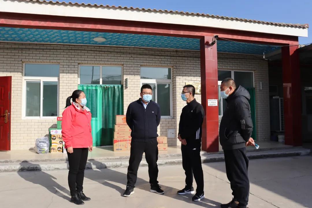 11月25日上午,镇党委书记李泽钧,党委副书记、镇长赵楠带队到辖区各村、派出所、卫生院、市场所及疫苗接种点进行慰问,送去镇党委政府的关心,并送上慰问品。