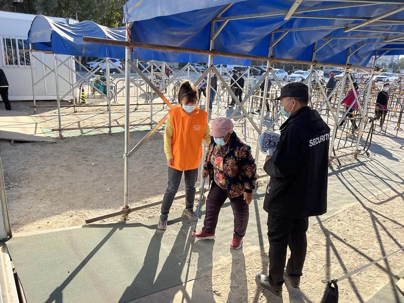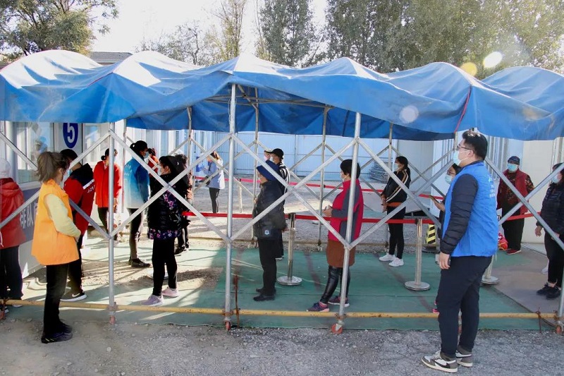 各村新时代文明实践站志愿者组织居民做核酸检测,维护现场秩序。