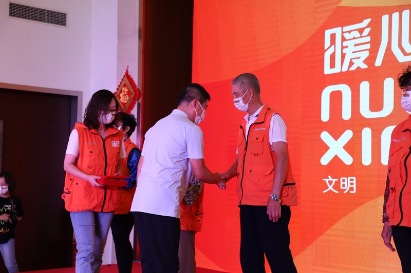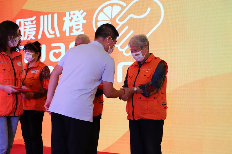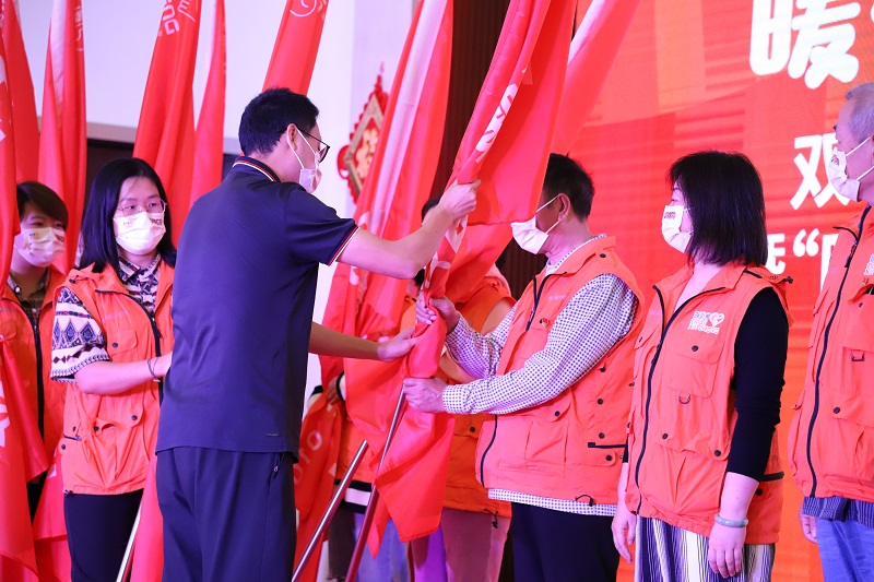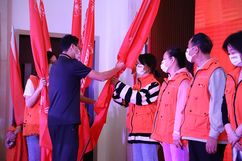 接下来,杜跃书记为10支不同服务类别的“暖心橙”综合志愿服务子品牌队伍授旗,将代表荣誉与鼓励的旗帜交到10位队伍带头人手中,希望志愿者们继续发挥无私奉献的精神,服务居民、建设家园,携手构建和谐社区,构建文明城区。