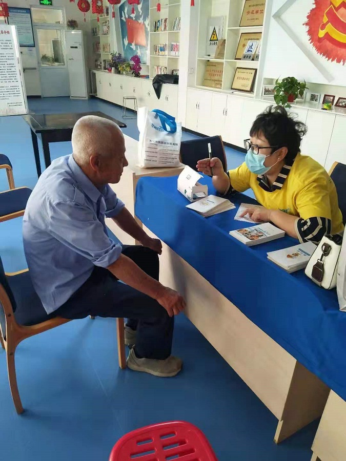 2021年9月13日,北石槽镇新时代文明实践所志愿服务队开展义诊活动,为辖区老年人提供免费身体检查。